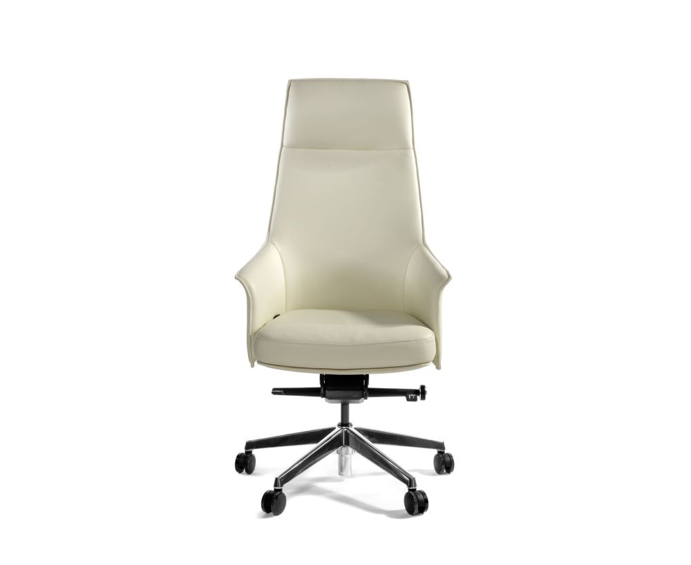 Кресло руководителя First class. Материал натуральная кожа. Спинка, внешняя сторона подлокотников и нижняя часть сиденья у кресла отделано высококачественной экокожей. Сиденье и спинка формованное PPU. Механизм качания с фиксацией в любом положении. Регулировка высоты. Регулировка жесткости качания. Подлокотники кожа/экокожа. Крестовина полированный алюминий. Колеса PU. Максимальная нагрузка 130 кг. Масса кресла 23 кг. Сертификат BIFMA.