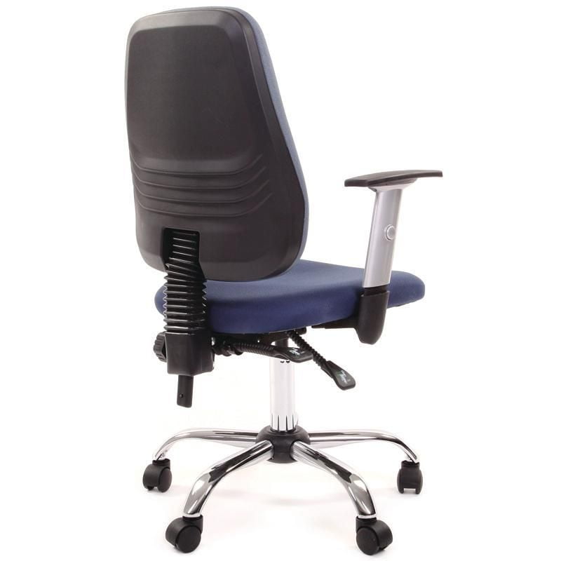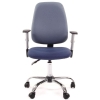 Кресло для оператора EChair-214 AL имеет обивку из прочной износостойкой ткани синего цвета на сиденье и голубого на спинке. Подлокотники Т-образной формы выполнены из пластика. Крестовина изготовлена из металла с хромированым покрытием. Механизм качания - Asynchro. Asynchro - механизм качания, позволяющий изменять угол наклона спинки независимо от сиденья. Угол между спинкой и сиденьем не фиксирован. Есть возможность фиксирования спинки в нескольких положениях. Максимальная статическая нагрузка - 100 кг.