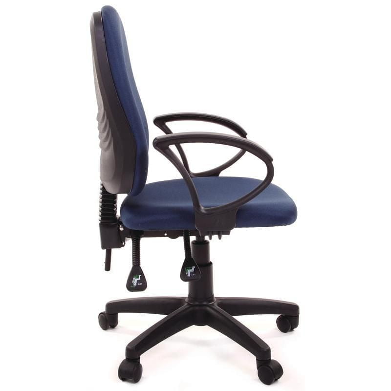 Кресло для оператора EChair-318 AL имеет обивку из прочной износостойкой ткани синего цвета. Подлокотники закругленной формы и крестовина изготовлены из пластика. Механизм качания - Asynchro. Asynchro - механизм качания, позволяющий изменять угол наклона спинки независимо от сиденья. Угол между спинкой и сиденьем не фиксирован. Есть возможность фиксирования спинки в нескольких положениях. Максимальная статическая нагрузка - 100 кг.