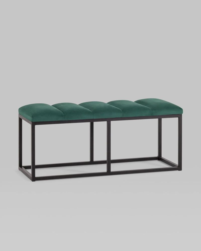 Банкетка на металлическом каркасе с простой формой идеальное дополнение для лаконичного интерьера. Мягкое сиденье обтянуло велюром - прочный, износостойкий, легкий в уходе и приятный на ощупь материал. Цельный каркас выполнен из металла в черном цвете, подпятники в основании предотвращают скольжение и не портят напольное покрытие. Рекомендованная нагрузка составляет 80 кг.