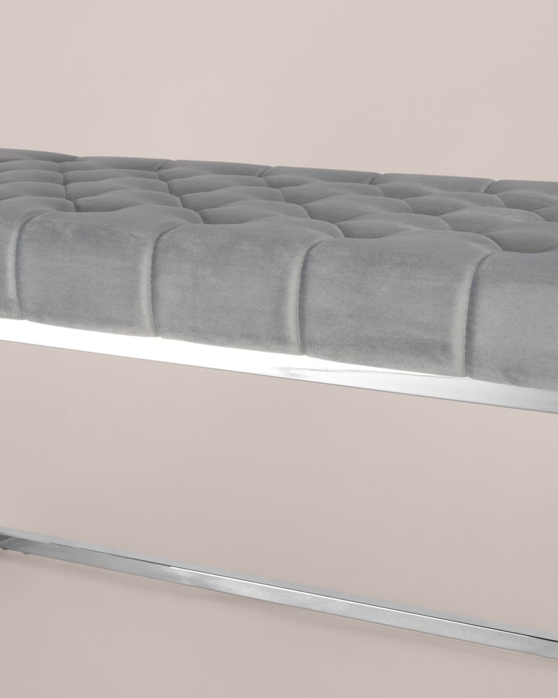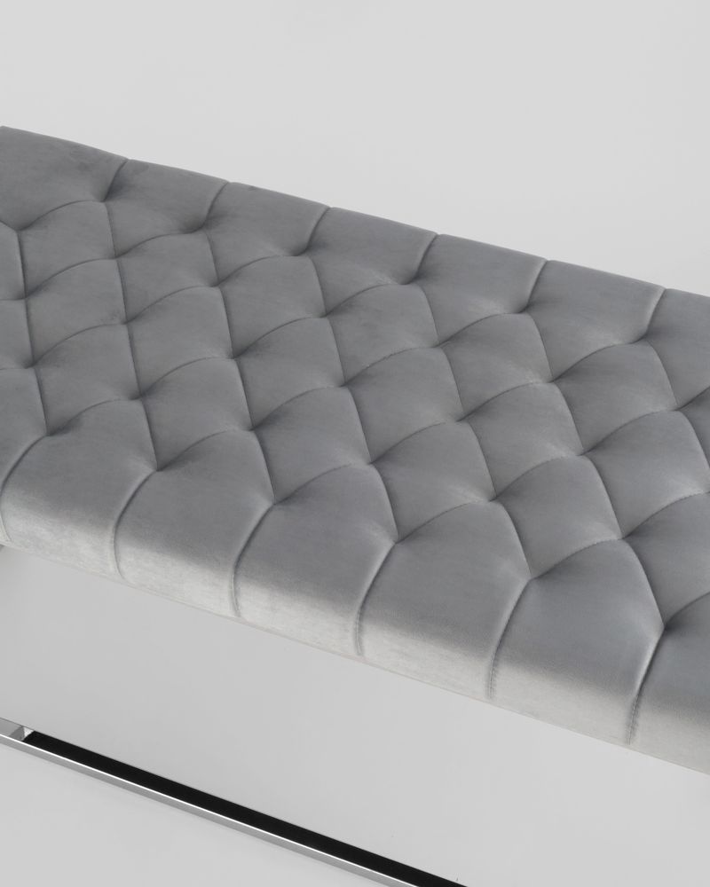 Банкетка выполнена из нержавеющей стали, что делает конструкцию прочной и надежной. Обивка сиденья - велюр. Материал обладает особой прочностью и износоустойчивостью, приятный на ощупь, эластичный и теплый.