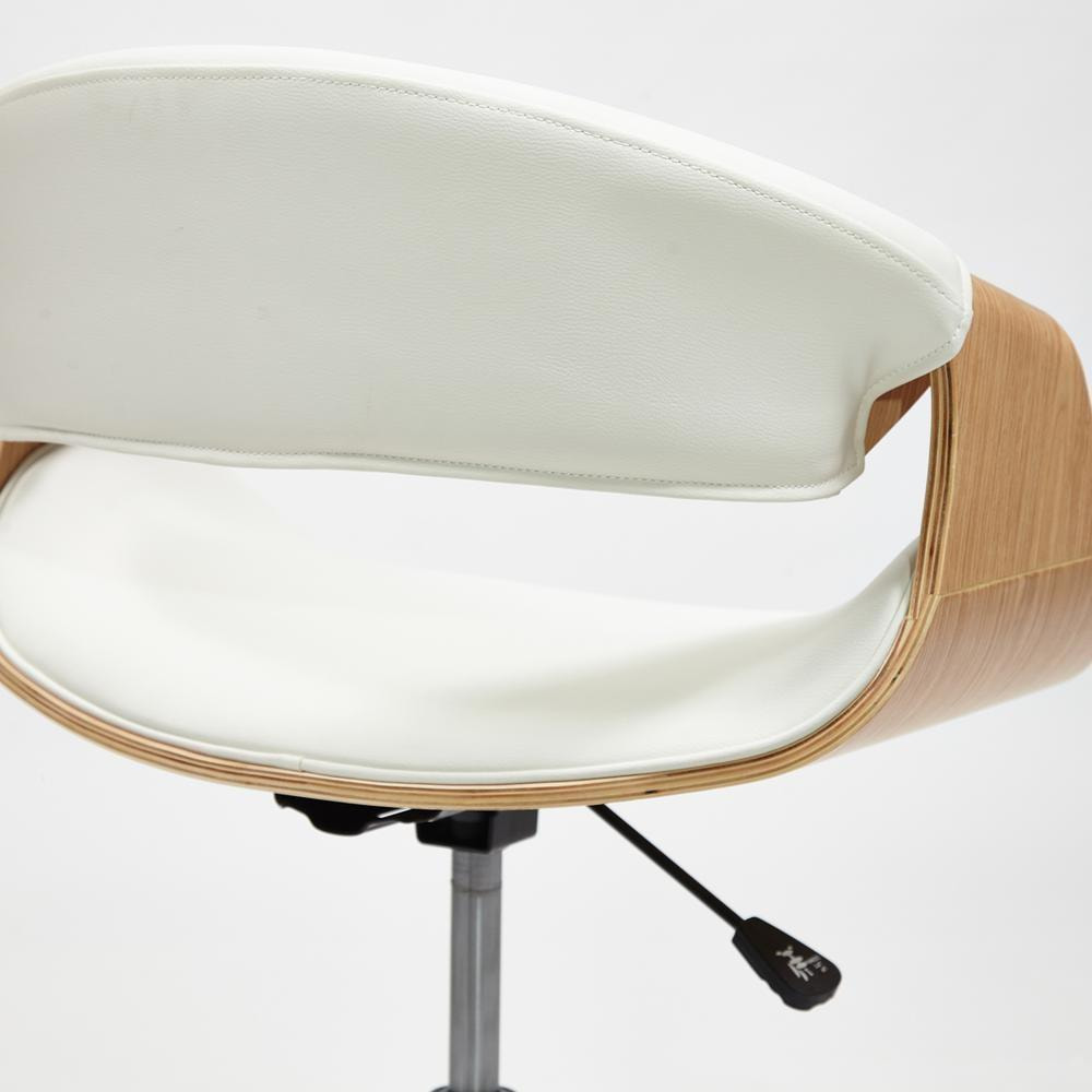 Элегантное и надежное кресло BEND из коллекции OFFICE - показатель безупречного вкуса своего владельца. Уникальная модель прекрасно впишется в дизайн офиса или дома. Деревянный каркас из шпонированной фанеры и обивка из искусственной кожи – удачное сочетание надежности и элегантности. Искусственная кожа гипоаллергенна, износостойка и проста в уходе. Сиденье с мягким наполнителем из пенополиуретана стандартной плотности пропускает воздух, не накапливает пыль, не деформируется на протяжении длительного времени. Для принятия удобной позы кресло регулируется по высоте. Деревянные подлокотники необычной формы помогут уменьшить дискомфорт в плечах и шее при длительной работе, а также комфортно расположиться у стола. Металлическая хромированная крестовина толщиной 640 мм обеспечивает устойчивость и безопасность модели. Сочетание каркаса натурального оттенка с белым сиденьем и спинкой выглядит привлекательно и эстетично. Наличие высококачественных полиамидных роликов позволяет легко передвигаться на кресле, даже не вставая с него. Колесики подходят для использования на низковорсовых ковровых покрытиях и на специальных защитных поверхностях. Модель BEND отличается повышенным комфортом и презентабельным внешним видом, удивит владельца своей долговечностью и надежностью. Максимальная нагрузка кресла 120 кг. Кресло поставляется в разобранном виде. Инструкция по сборке прилагается. Страна-производитель: КИТАЙ