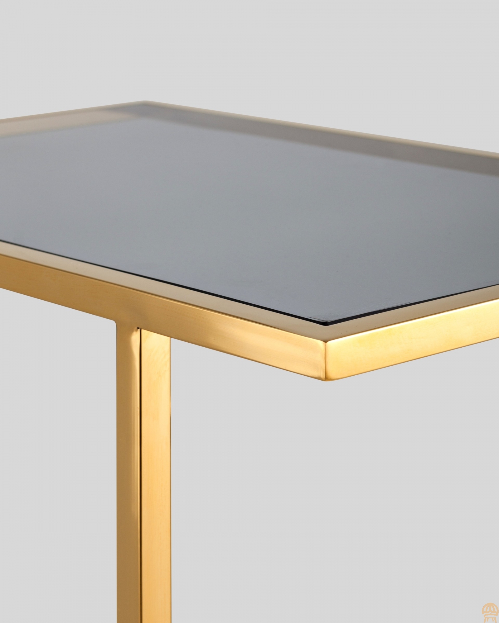 Журнальный столик из нержавеющей стали 50*32. Столешница из закаленного стекла smoke. Каркас сталь золото.