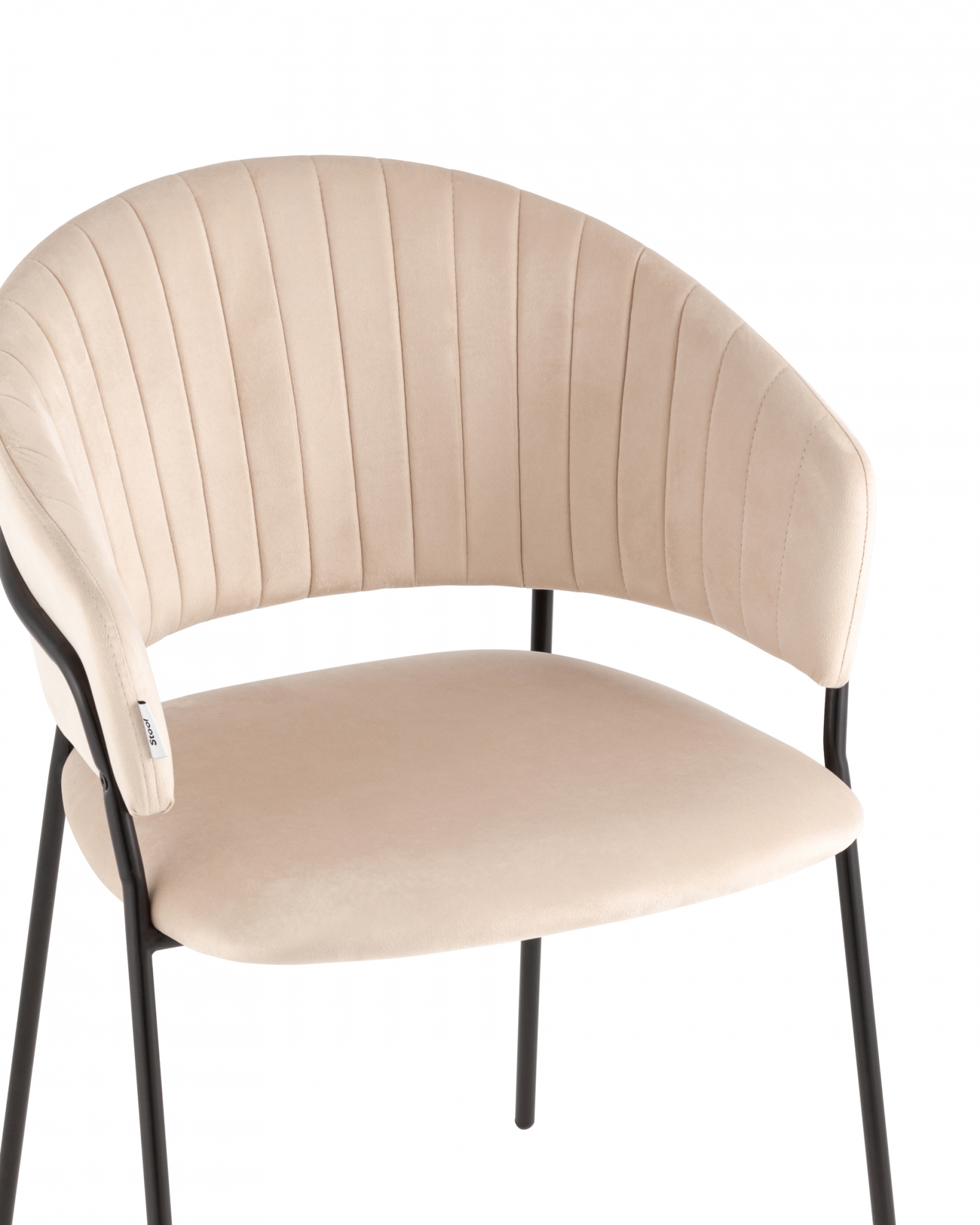 Стильный кухонный стул с оригинальной формой спинки, высокой поддержкой и подлокотниками. В качестве обивки используется мягкий велюр – приятный на ощупь износостойкий, гигроскопичный материал. Металлический каркас в черном цвете огибает спинку и выступает аккуратным акцентом модели. Широкое сиденье обеспечивает удобную посадку и уют.
