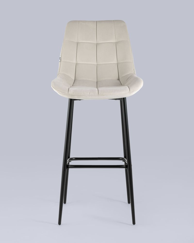 Современный барный стул в мягкой обивке из велюра без подлокотников. Ножки черные, изготовлены из металла. Удобная форма сиденья, поддерживающая спинка. Лаконичный дизайн стульев подойдет к практически в любой интерьер.