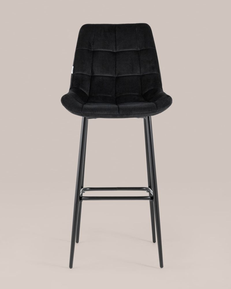 Современный барный стул в мягкой обивке из велюра без подлокотников. Ножки черные, изготовлены из металла. Удобная форма сиденья, поддерживающая спинка. Лаконичный дизайн стульев подойдет к практически в любой интерьер.