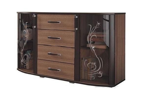 Комод с изящным узором, украшен стразами Swarovski, станет украшением вашего дома и удачно впишется в любой интерьер.Материал ЛДСП. Цвет ясень шимо.Габариты ШхВхГ 1300х770х442.Условия покупки