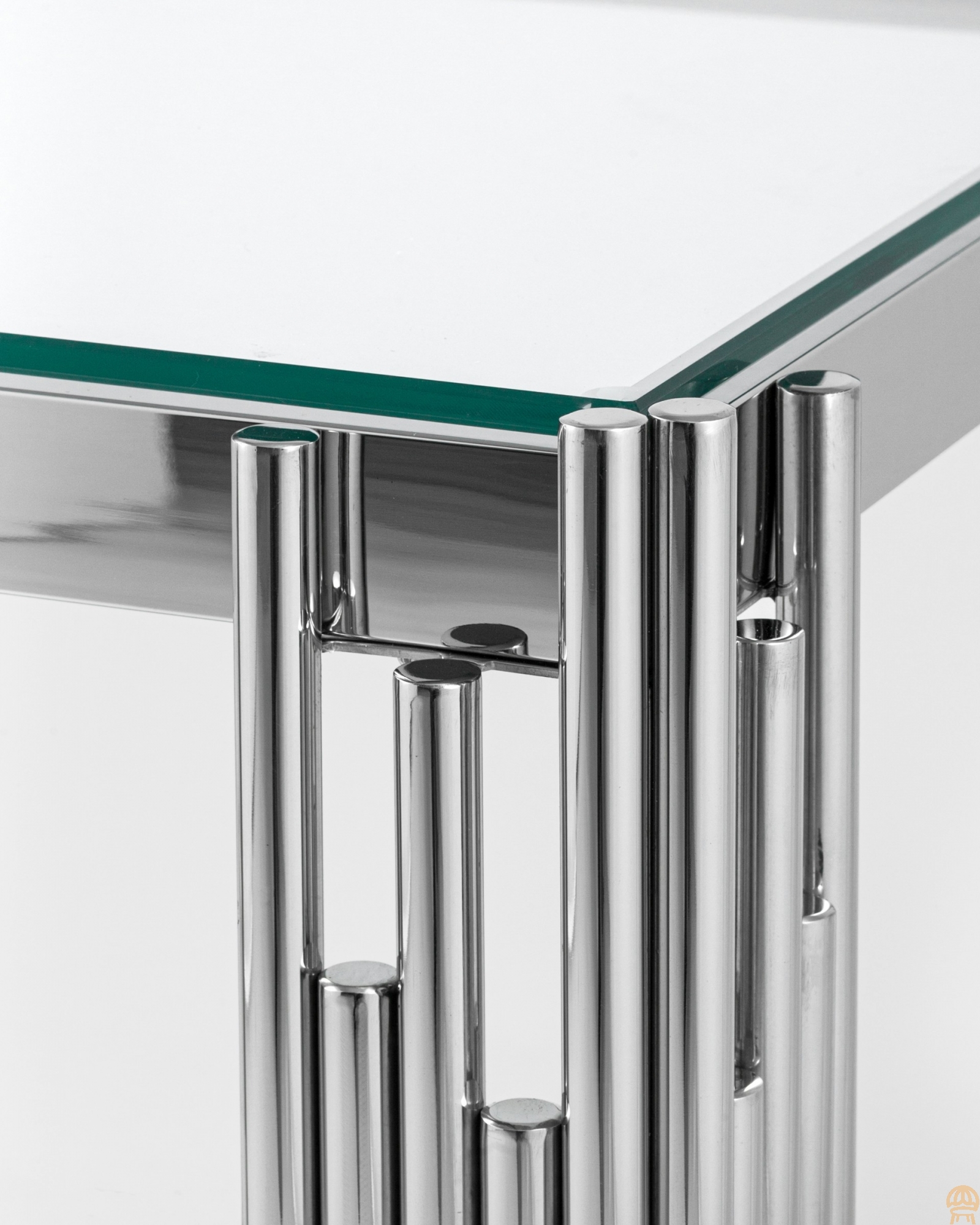 Журнальный столик ГЭТСБИ благодаря оригинальной форме станет ярким дизайнерским акцентом в интерьере. Каркас стола изготовлен из нержавеющей стали, столешница - закаленное стекло.
