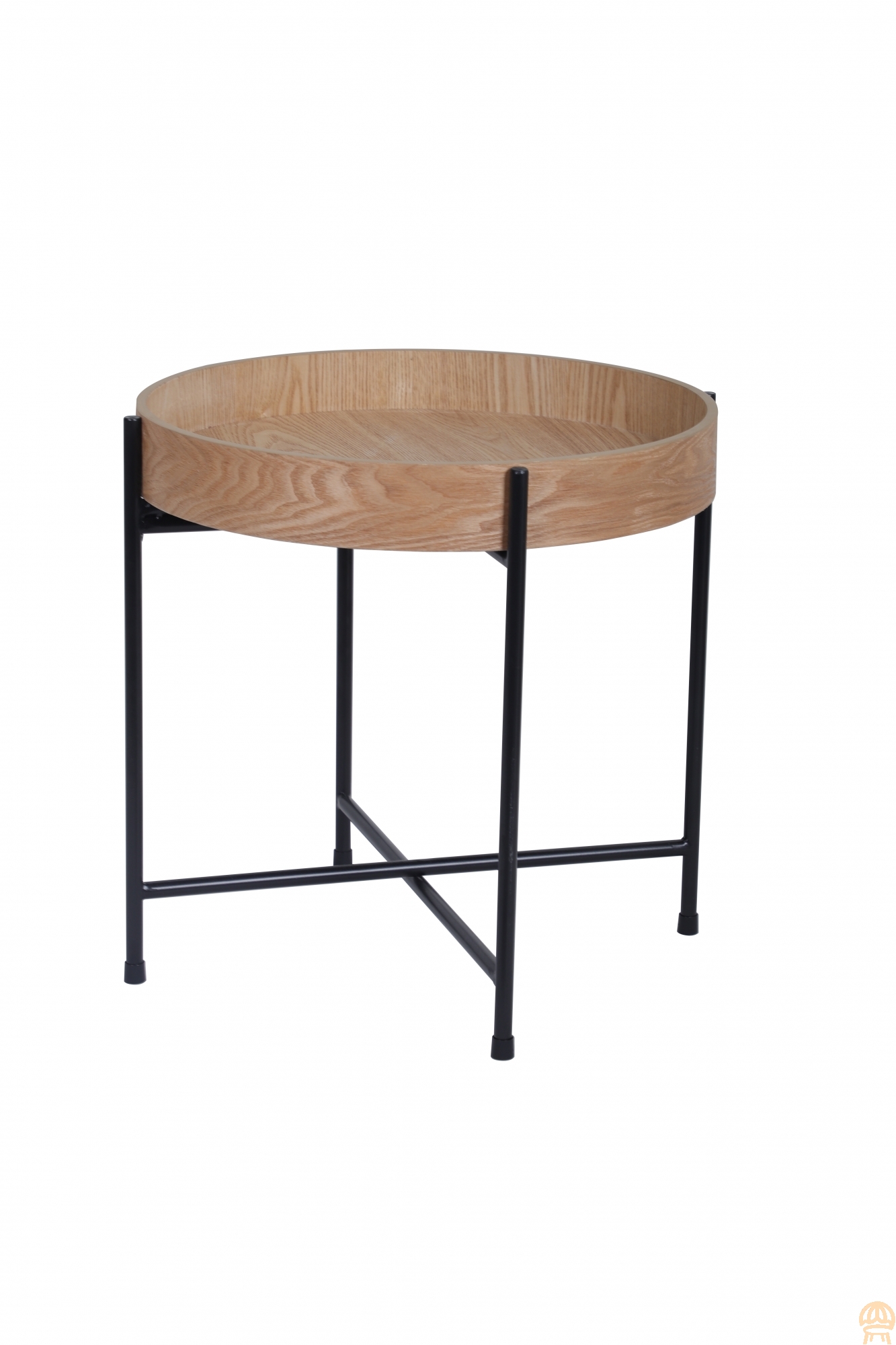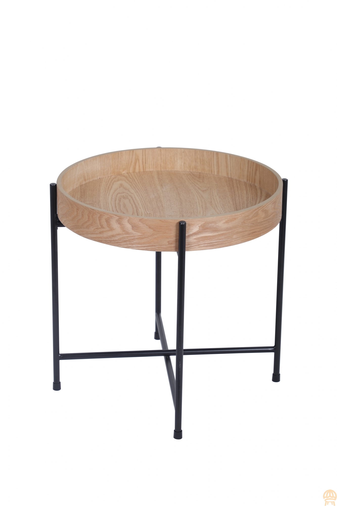 Лаконичный журнальный столик Стар. Круглая столешница выполнена из МДФ и покрыта шпоном из ясеня. Высокие бортики по краям предотвращают падение предметов со столика и добавляют удобства при использовании. Металлический каркас в черном цвете выдерживает нагрузку до 50 кг. Столик станет практичным дополнением интерьера спальни или прихожей.