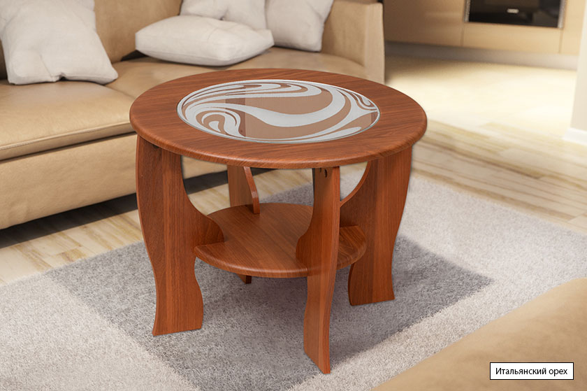 Стол журнальный круглый со вставкой из стекла 1 - это качественное изделие, производимое компанией Маг-ривер, в соответствии с действующими государственными стандартами.