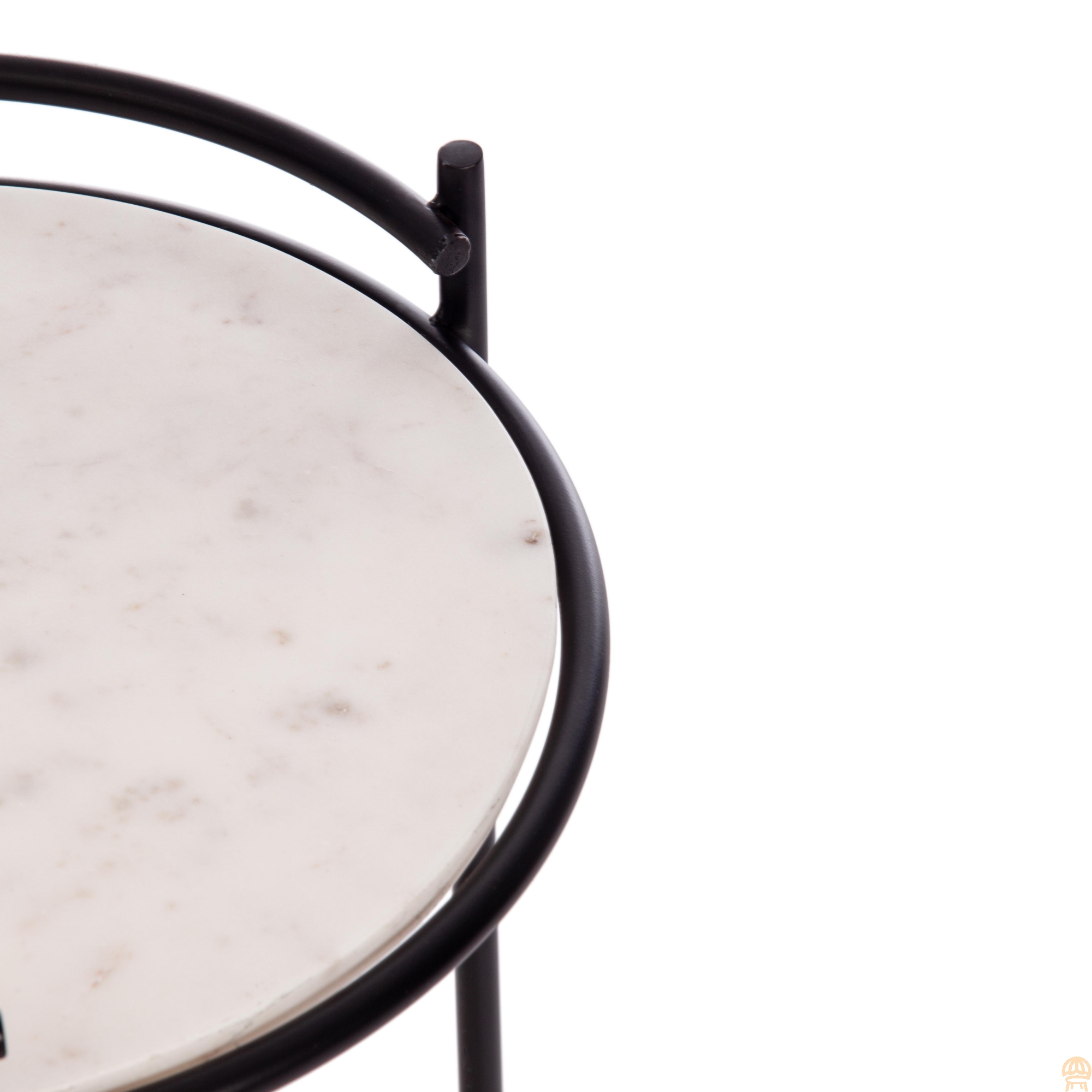 Эксклюзивный кофейный столик Secret De Maison FASELIS из коллекции SILVER дополнит интерьер вашего дома, создаст атмосферу уюта, легкости и воздушности в любом помещении. Элегантная модель отлично подойдет для приема гостей. За кофейным столиком можно комфортно расположиться и выпить чашку чая или кофе в приятной компании. Прочный каркас модели выполнен из алюминиевого сплава, что придает ей устойчивость, основательность и надежность. Круглая столешница изготовлена из белого мрамора - природного материала с красивой текстурой. Такая поверхность устойчива к повреждениям, воздействию температур и влаги, не требует специального ухода. Благодаря своим компактным размерам и небольшому весу кофейный столик можно легко переместить на новое место, не повреждая напольное покрытие. Черные алюминиевые ножки и белая мраморная столешница будут удачно сочетаться с другими предметами интерьера. Кофейный столик FASELIS - отличное украшение вашего дома, способное придать обстановке особый шарм и обаяние. Кофейный столик будет отлично смотреться в гостинной, спальне или при входе в кафе. Столик поставляется в собранном виде. Страна-производитель: ИНДИЯ