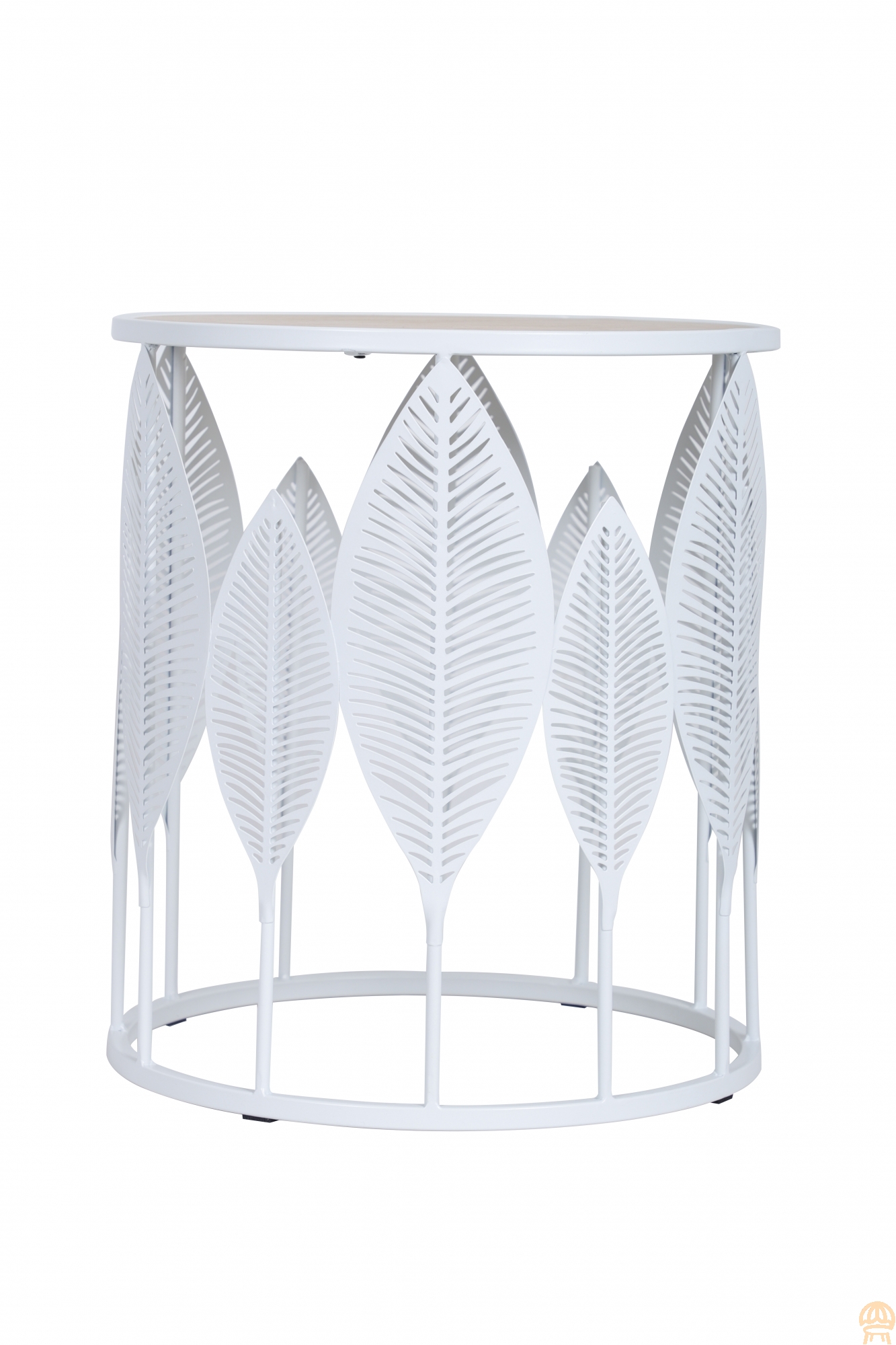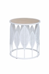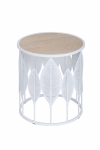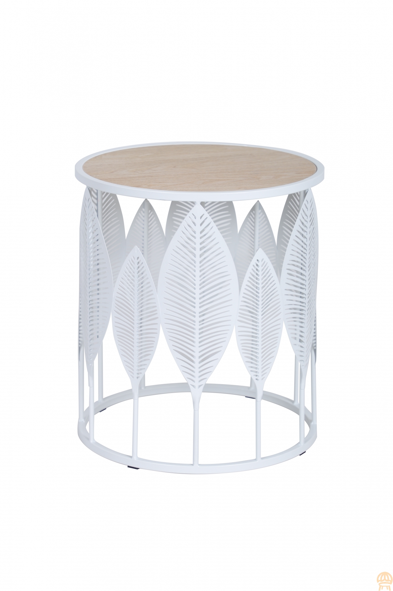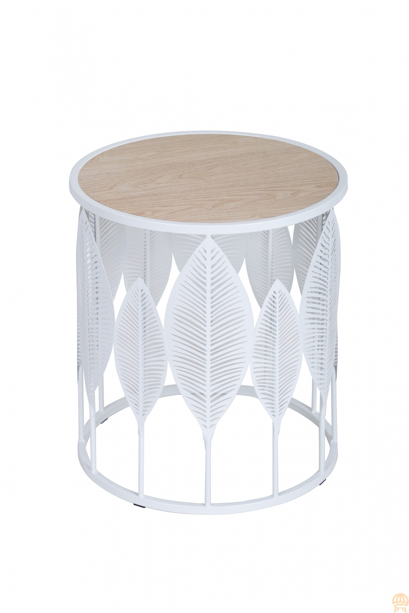Круглый журнальный столик с белым каркасом. Столешница выполнена из МДФ и покрыта шпоном светлого дерева, гармонично сочетается с природными мотивами основания столика. Металлический каркас белого цвета выдерживает нагрузку до 50 кг. Журнальный столик поможет дополнить интерьер в эко-стиле и добавить уюта.