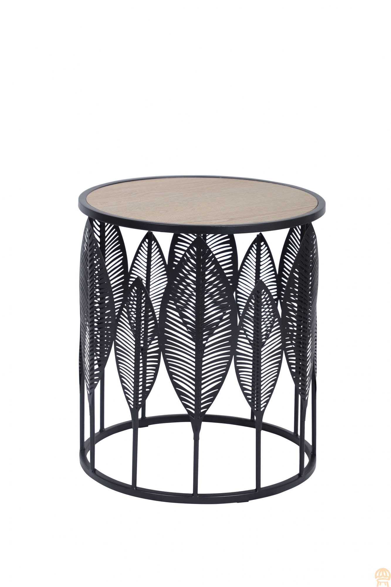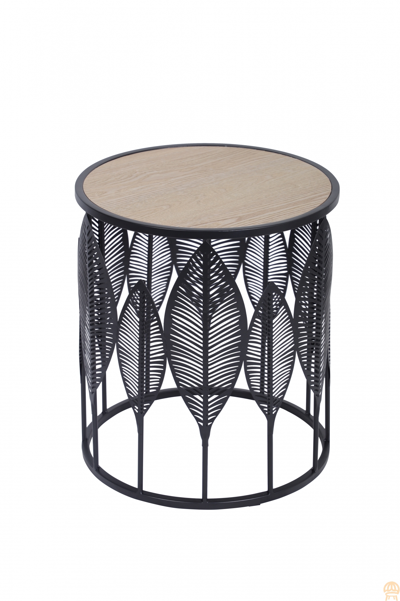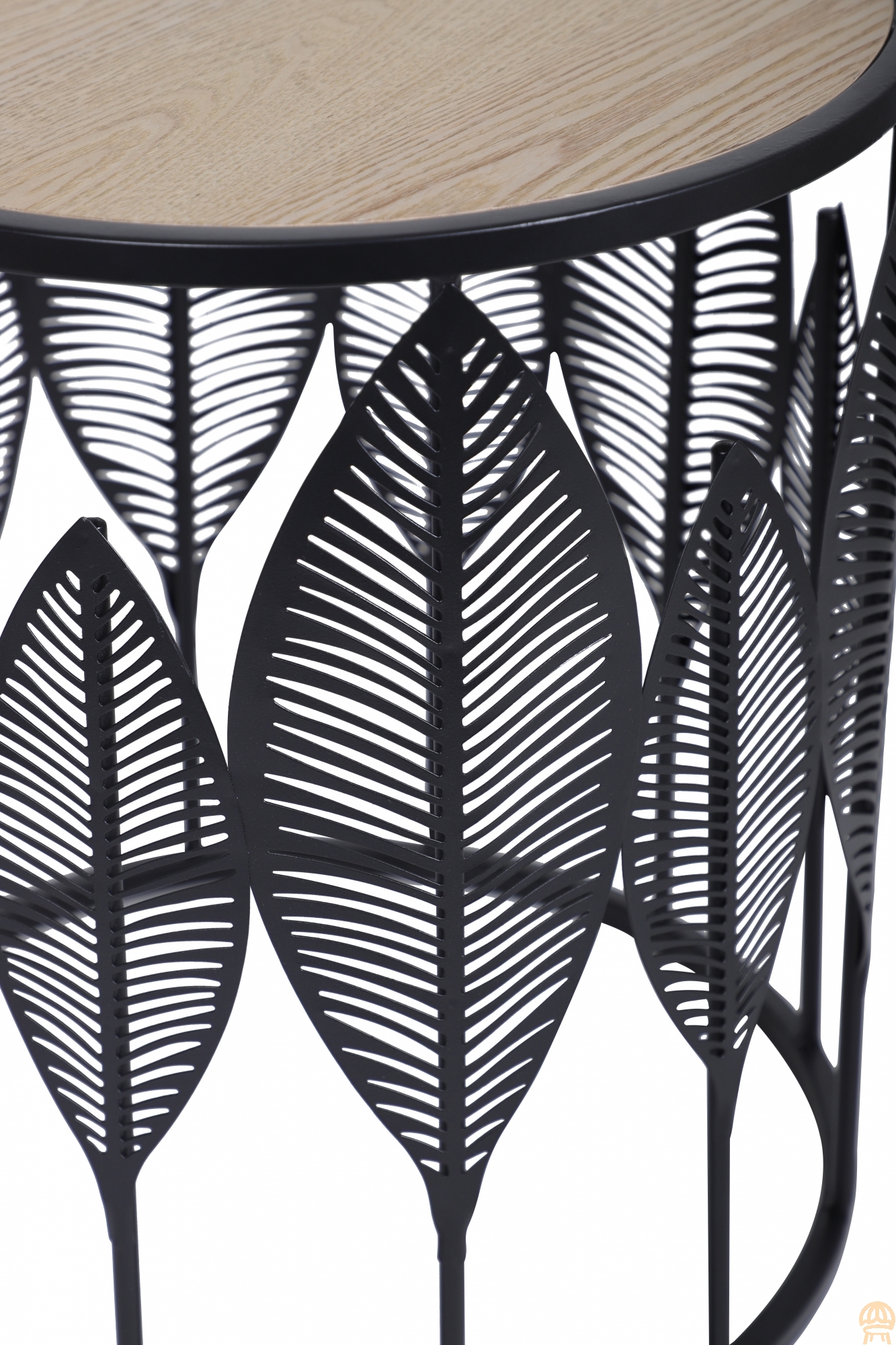 Круглый журнальный столик с черным каркасом. Столешница выполнена из МДФ и покрыта шпоном светлого дерева, гармонично сочетается с природными мотивами основания столика. Металлический каркас черного цвета выдерживает нагрузку до 50 кг. Журнальный столик поможет дополнить интерьер в эко-стиле и добавить уюта.