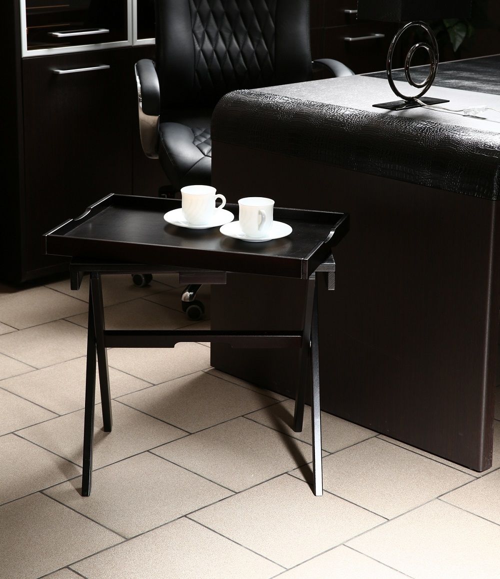Стол журнальный Флэш – универсальный раскладной столик для быстрой организации поверхности, которую можно сервировать легкими закусками в любом месте вашей квартиры или дома. Особенностью столика является то, что приобретая его, вы приобретаете сразу два предмета – собственно раскладной столик и вместительный поднос. Даже если столик вам не будет нужен каждый день, и вы его сложите и поставите в шкаф, то поднос – такая вещь, которая нужна практически ежедневно. Поднос оснащен бортиками, которые не позволят предметам соскользнуть с него при переноске, и удобными выемками под руки, которые позволят легко снять его даже с поверхности стола. Поднос сделан таким образом, что при установке его на столик, он не соскользнет, даже если вы его нечаянно заденете. В сложенном виде столик занимает совсем немного места.