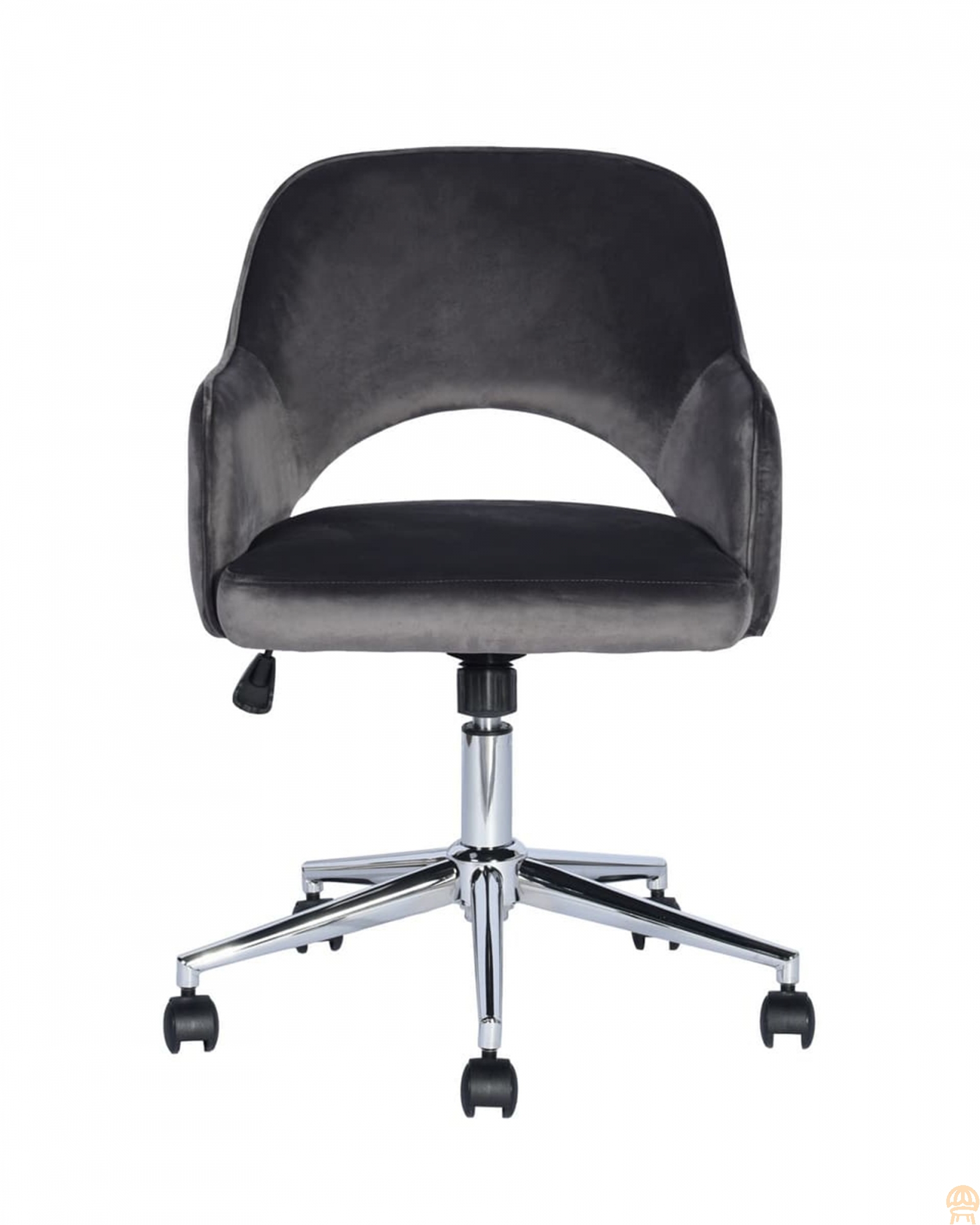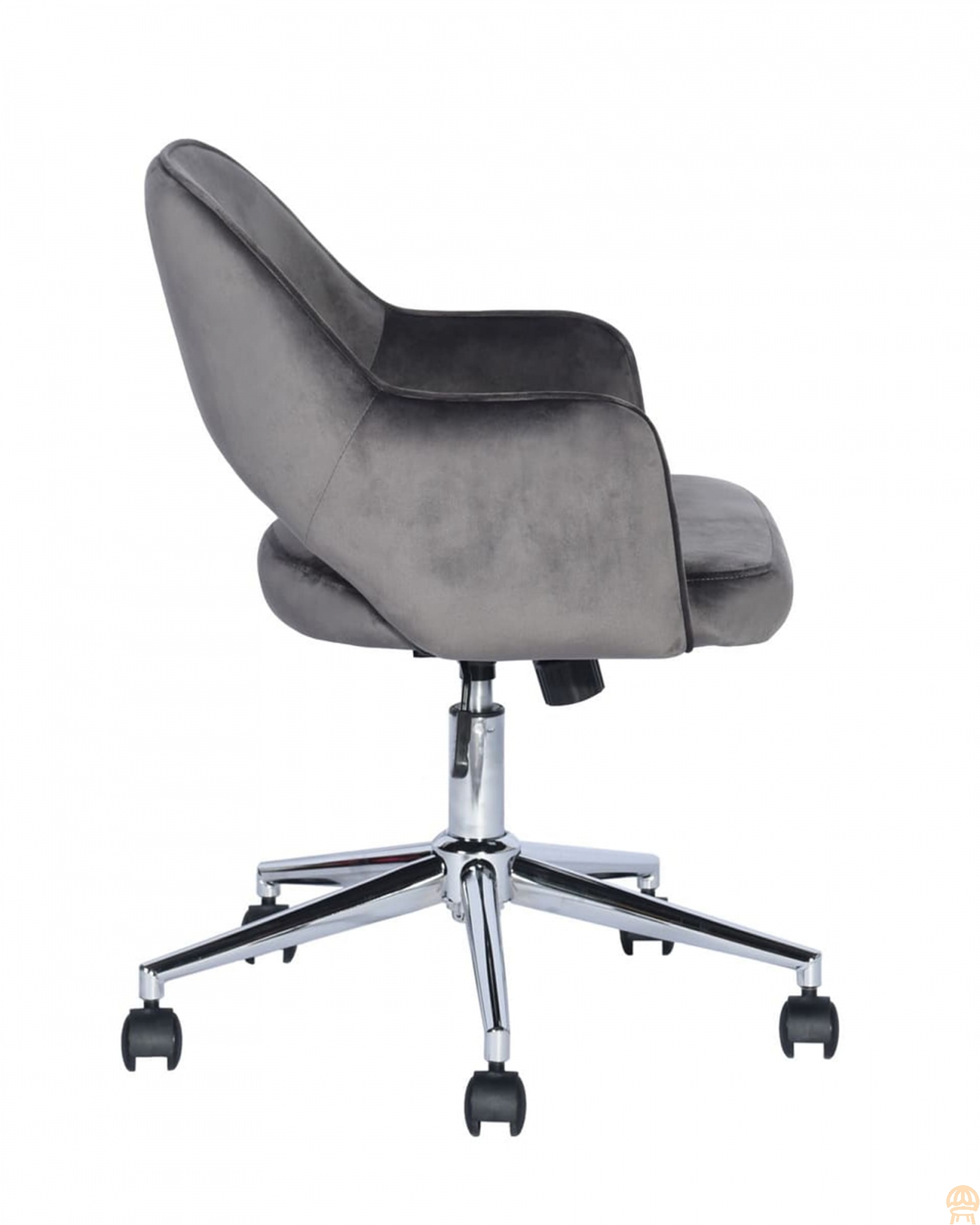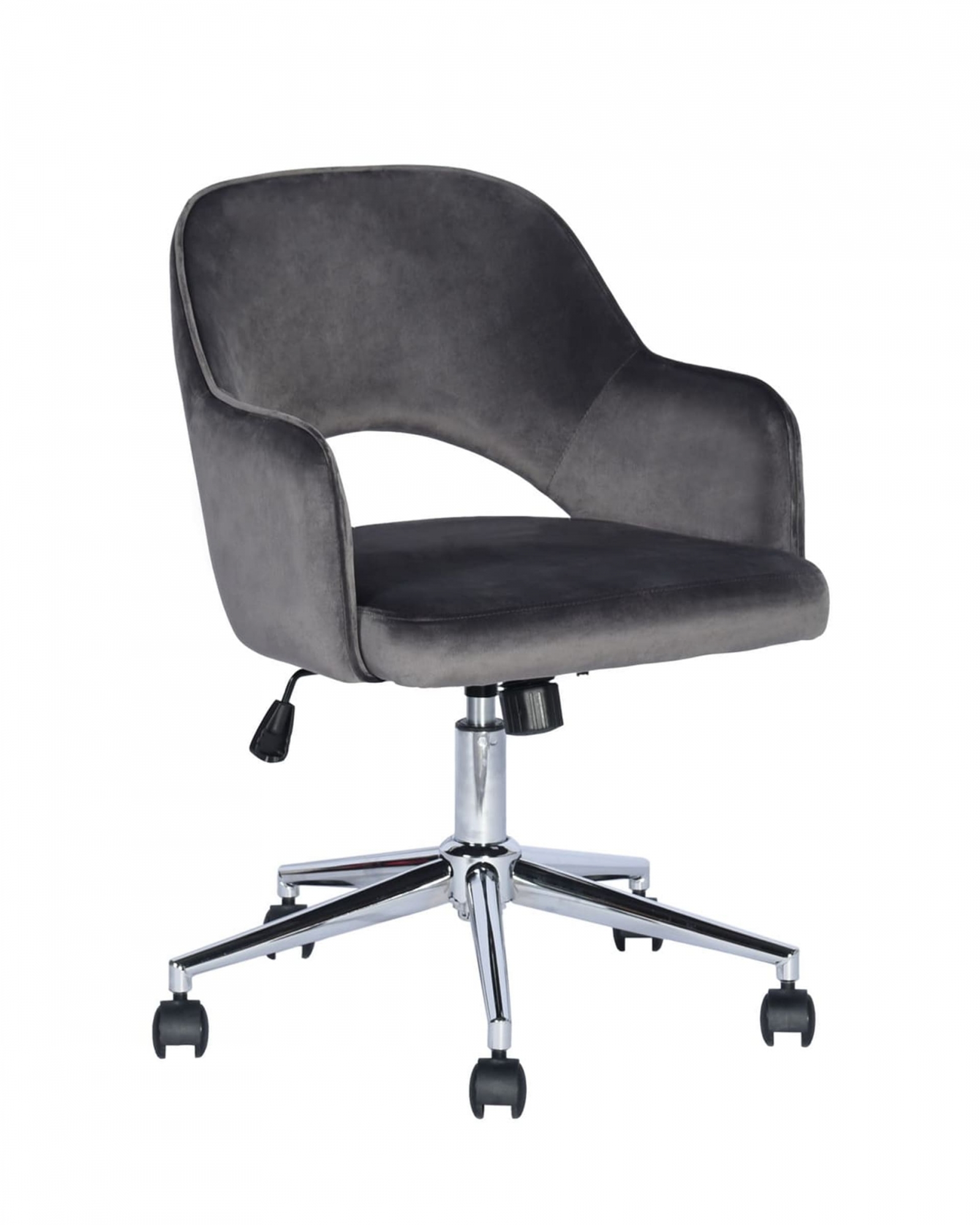 Уютное и стильное офисное кресло в обивке из велюра. Комфорта добавляют удобные подлокотники, а благодаря механизму регулировки высоты и качания можно выбрать удобное положение.Удобная спинка оказывает качественную поддержку и позволяет провести в кресле долгое время без усталости. Каркас изготовлен из хромированного металла и позволяет выдержать нагрузку до 120 кг.