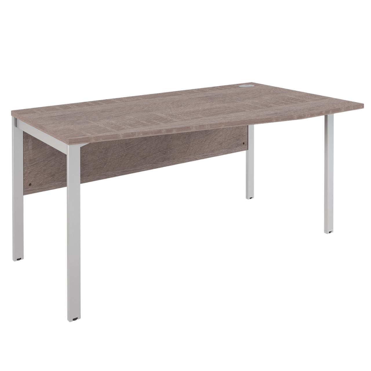Столешница из ЛДСП т.25мм., кромка ПВХ т. 2мм., фронтальная панель из ЛДСП т. 18 мм., опоры - металлокаркас из трубы 50х25, цвет серебро. Стол комплектуется одной заглушкой.