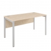 Письменный офисный стол на металлокаркасе. Столешница из ЛДСП толщиной, кромка ПВХ толщиной 2 мм, фронтальная панель из ЛДСП толщиной 18 мм. Опоры - металлокаркас из трубы 50х25, цвет - серебро. Стол комплектуется двумя заглушками.