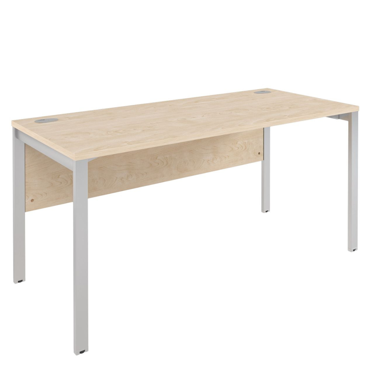 Письменный офисный стол на металлокаркасе. Столешница из ЛДСП толщиной, кромка ПВХ толщиной 2 мм, фронтальная панель из ЛДСП толщиной 18 мм. Опоры - металлокаркас из трубы 50х25, цвет - серебро. Стол комплектуется двумя заглушками.