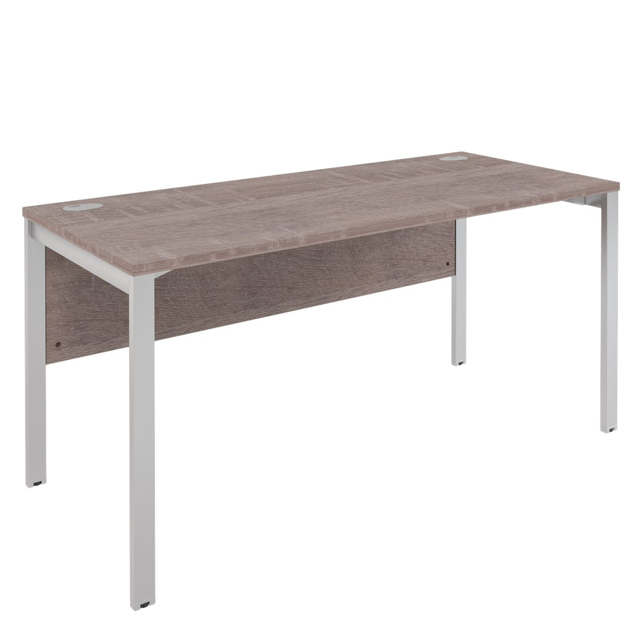 Письменный офисный стол на металлокаркасе. Столешница из ЛДСП толщиной, кромка ПВХ толщиной 2 мм, фронтальная панель из ЛДСП толщиной 18 мм. Опоры - металлокаркас из трубы 50х25, цвет - серебро. Стол комплектуется двумя заглушками.