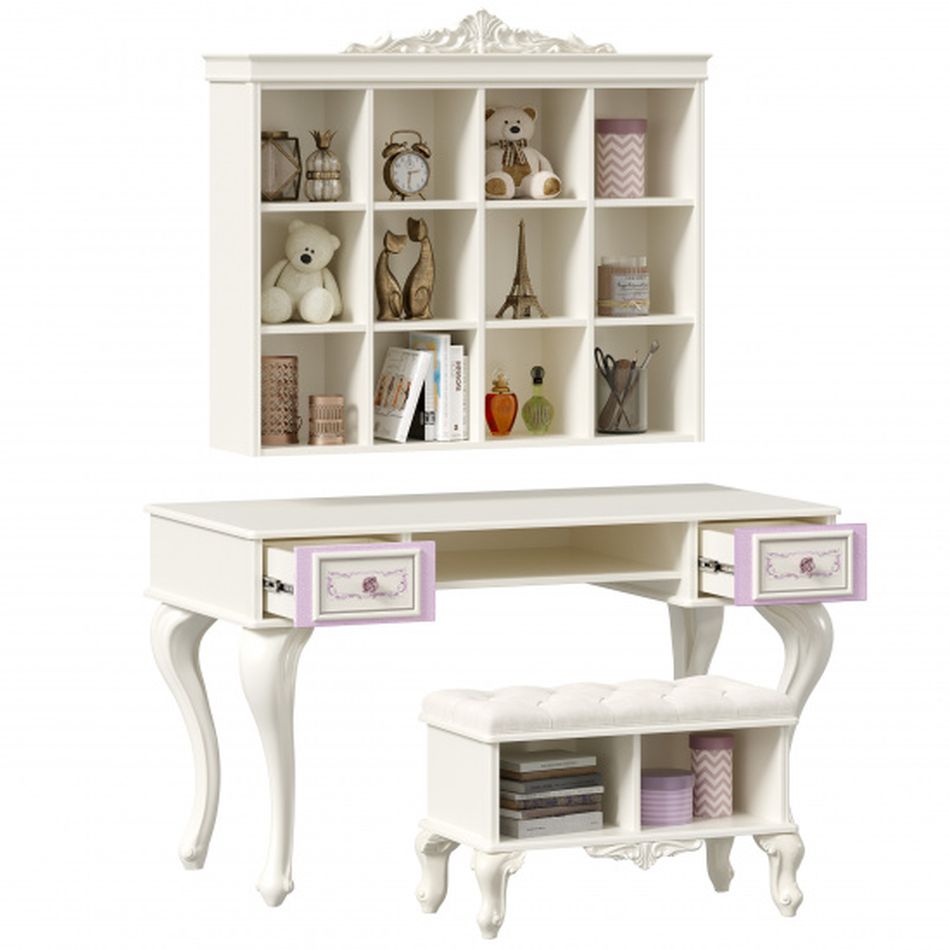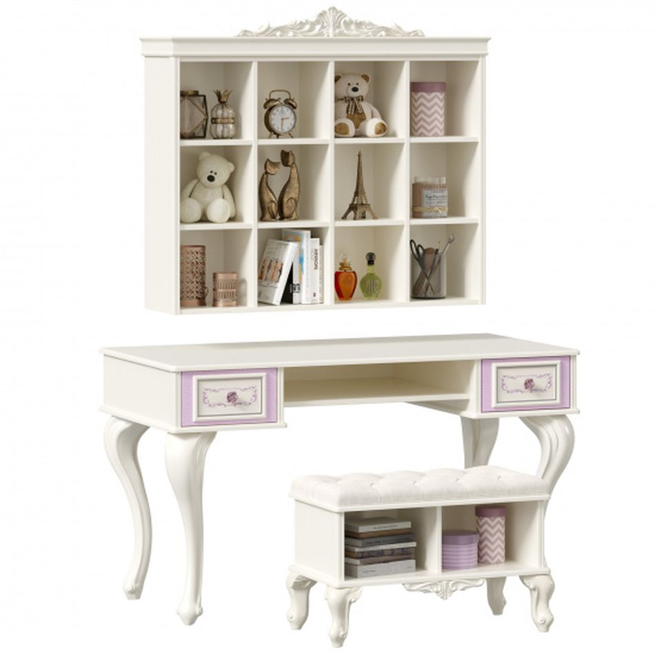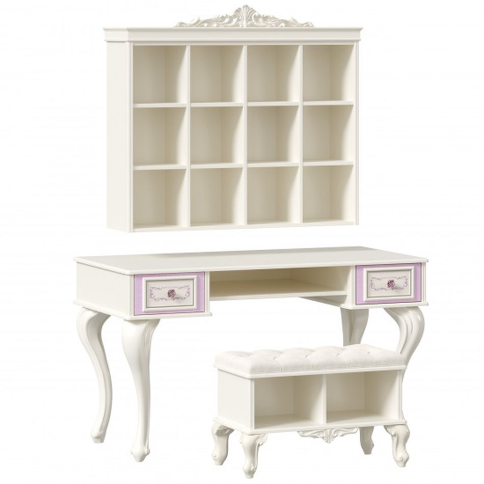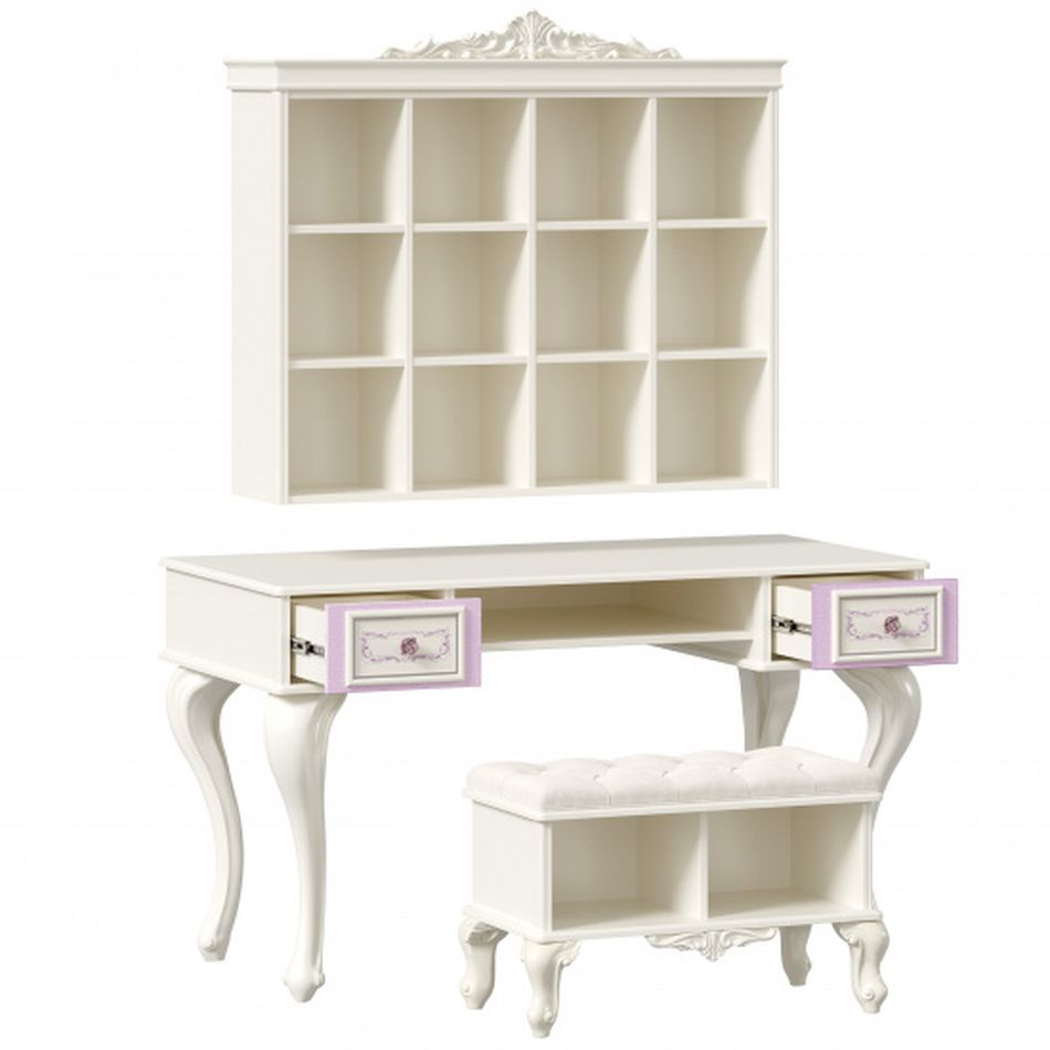 Стол письменный с полкой навесной и банкеткой Любимый дом Маркиза 04 Алебастр Шампань
