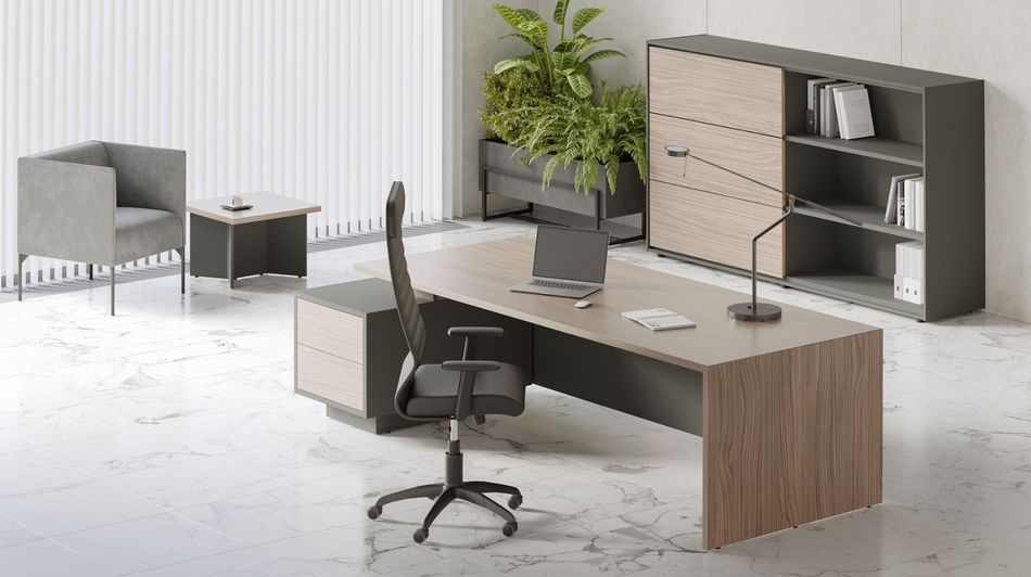 Кабинет DALI является отражением стиля, динамики и хорошего вкуса его владельца. Лаконичные формы, ясность и четкость линий всех элементов, благородные оттенки древесных текстур придают офису деловой и элегантный облик. DALI это качественный, привлекательный идоступный гарнитур, который станет украшением вашего офиса. Все модели имеют высокое качество используемых материалов ипродуманность дизайна. Модельный ряд соответствует всем требованиям функциональности рабочего пространства. Визуальную легкость и элегантность набору обеспечивает использование материалов природной цветовой гаммы и небольшой толщины. Современный дизайн, удобство эксплуатации, идеальное соотношение цены и качества основные критерии мебели для руководителя DALI. Характеристики Материал ЛДСП/МДФ/шпон Покрытие лак Толщина столешниц 33 мм Толщина каркасов тумб и шкафов 16 мм Кромка столешниц и топов шпон Ящики направляющие скрытого монтажа, технология Push-to-Open Стекло матовое в алюминиевой рамке Фасады шкафов с доводчикамиУсловия покупки
