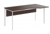 Столешница из ЛДСП т.22мм. Металлокаркас из трубы 40х20х1,5мм. без регулировки внизу. Опоры столов комплектуются пластиковой заглушкой. Покрытие краска белая полуматовая или алюминий. Металлокаркас соединяется со столешницей через металлическую проставку D-16мм. H-6мм. Комплектуется фронтальной панелью из ЛДСП т. 18мм. крепится к столешнице при помощи уголков.