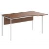 Столешница из ЛДСП т.22мм. Металлокаркас из трубы 40х20х1,5мм. без регулировки внизу. Опоры столов комплектуются пластиковой заглушкой. Покрытие краска белая полуматовая или алюминий. Металлокаркас соединяется со столешницей через металлическую проставку D-16мм. H-6мм. Комплектуется фронтальной панелью из ЛДСП т. 18мм. крепится к столешнице при помощи уголков.