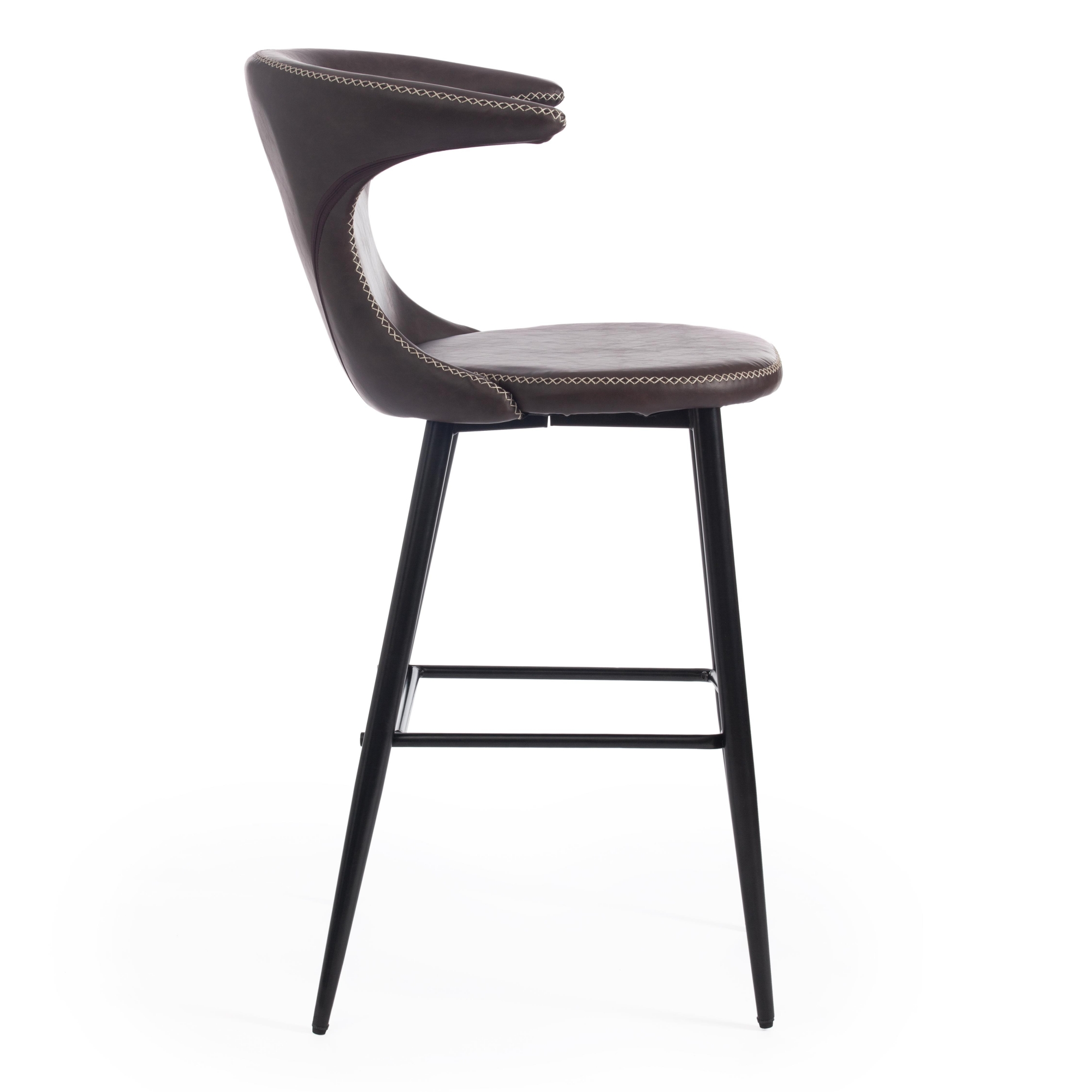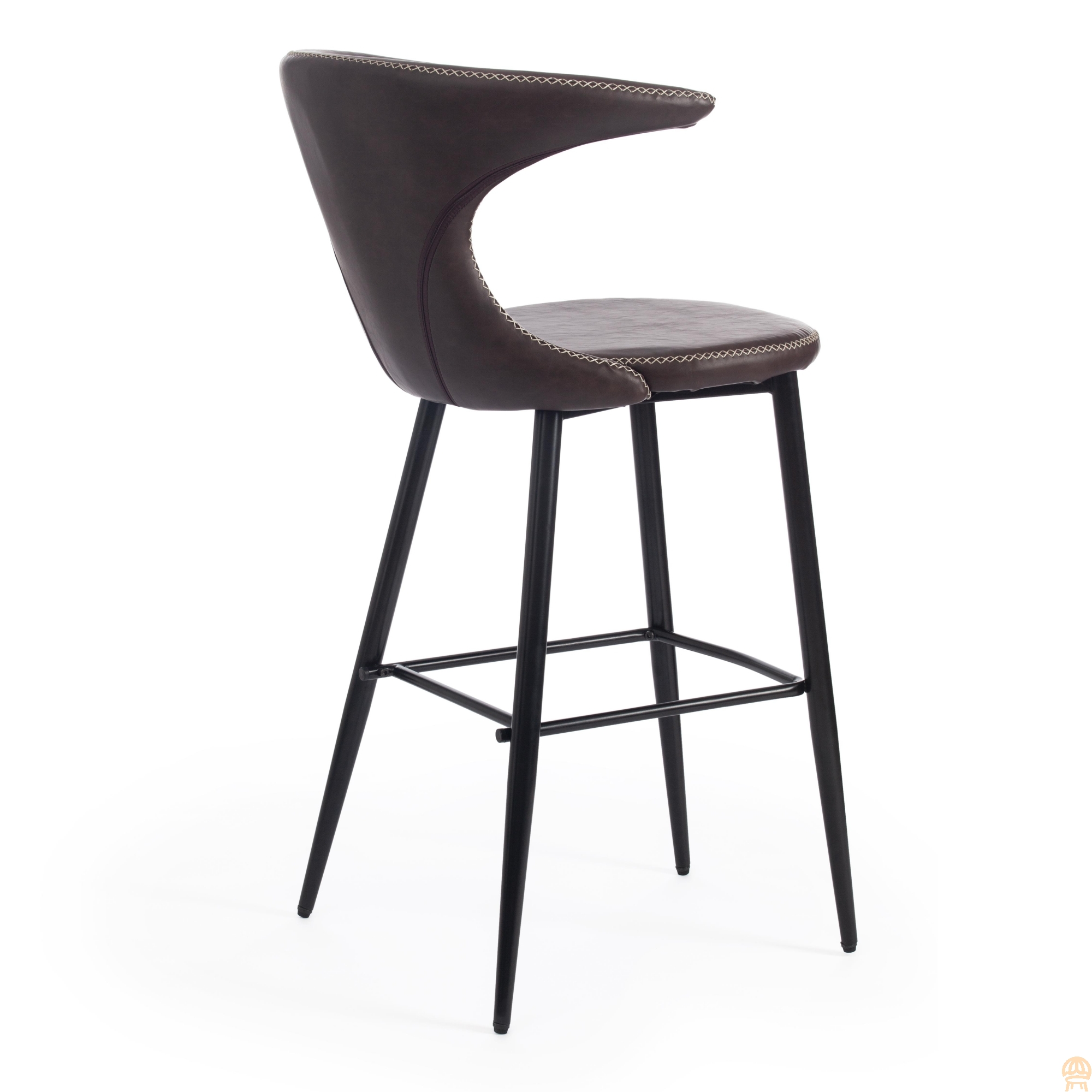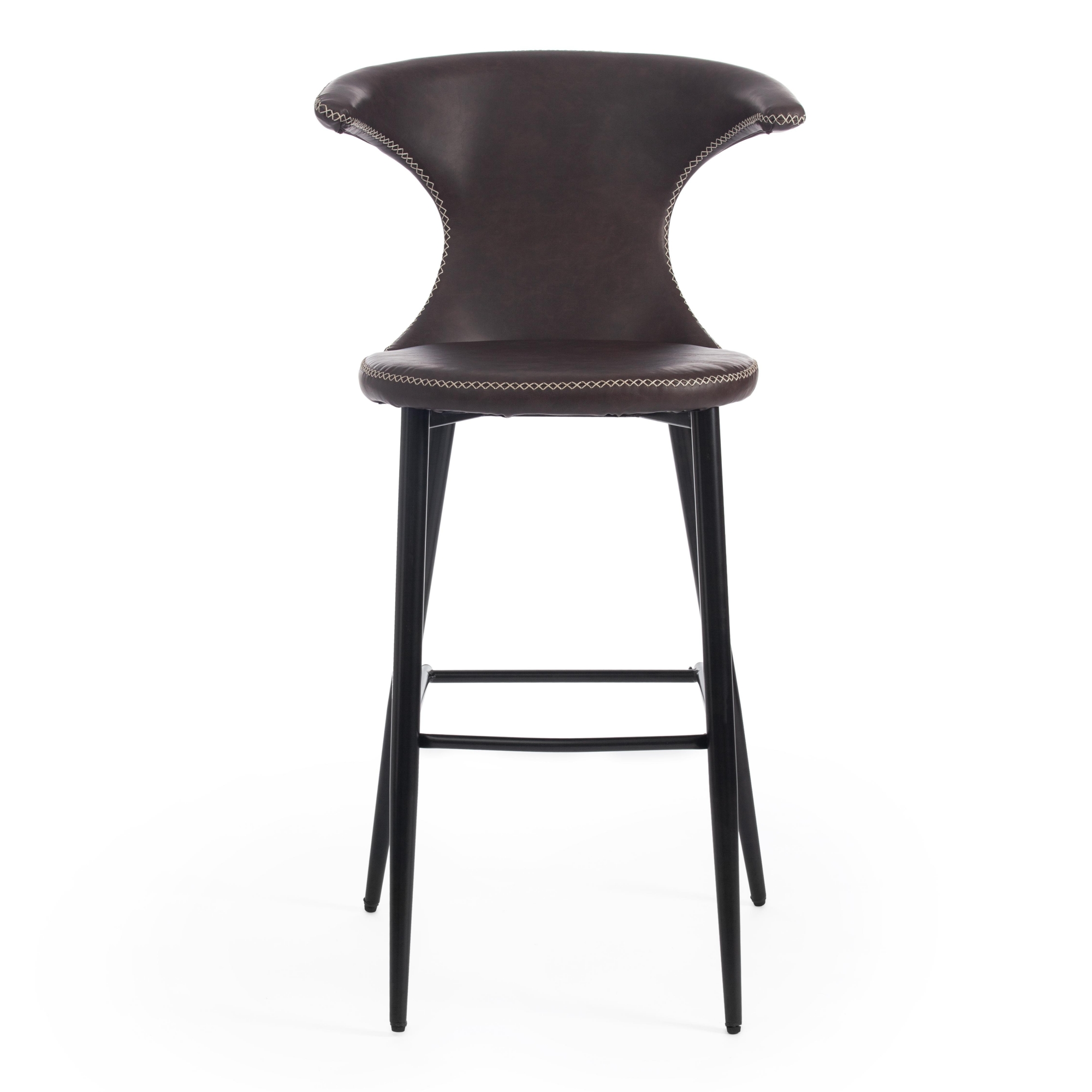 Оригинальный дизайн барного стула FLAIR BAR из коллекции Modern позволит привлечь внимание и сделать яркий акцентв вашем интерьере. Стул способен придать индивидуальность пространству, выделить его из сотен обыденных и привычных стульев. Оригинальная форма спинки, черные металлические ножки и обивка из коричневой экокожи с красивой отделочной строчкой подчеркив ают неповторимый облик изделия. Удобная форма спинки, мягкое сиденье и подставка для ног обеспечат комфорт на протяжении длительного времени. Экокожа не мнётся, не меняет форму, проста в уходе. Металлический каркас отличается прочностью, устойчивостью к износу и долговечностью. Стул не требует специального ухода и будет долгое время радовать вас своим первоначальным видом. Стул хорошо подойдет для гостиной, для кухни, для бара, для ресторана или для кафе. Стул очень прост в сборке, инструкция по сборке прилагается. Страна-производитель: КИТАЙ