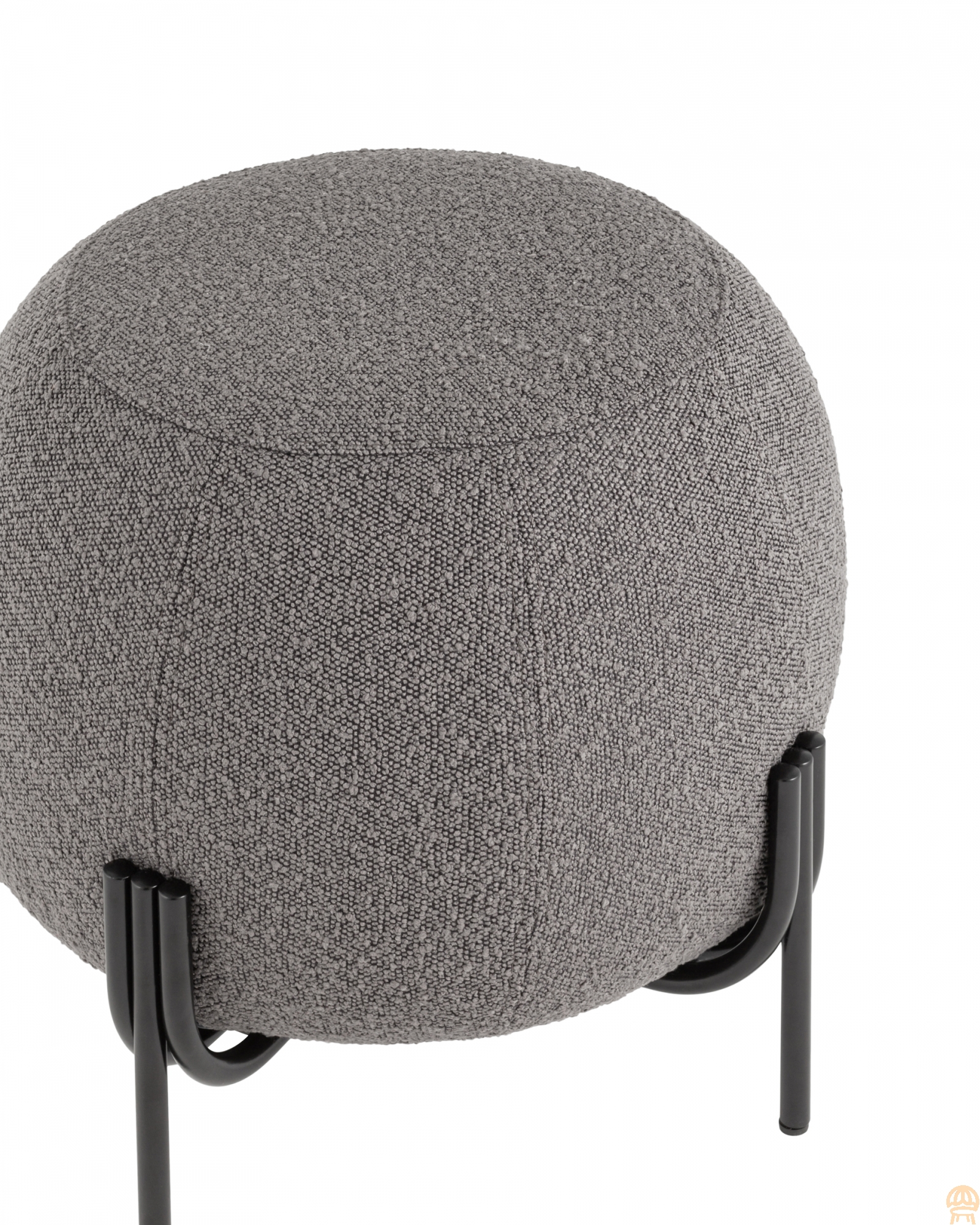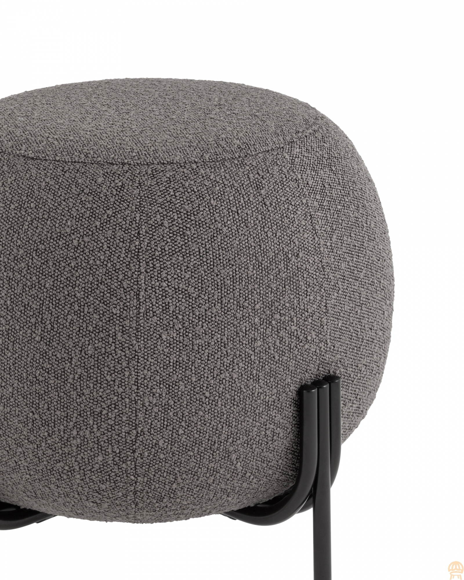 Лаконичный круглый пуф на металлических ножках. Мягкая обивка выполнена из ткани букле, тактильно приятный и долговечный материал. Металлические ножки черного цвета выдерживают нагрузку до 80 кг. Подпятники в основании ножек делают пуф более устойчивым и предотвращают скольжение. Пуфик станет отличным дополнением для спальни, прихожей или зала.