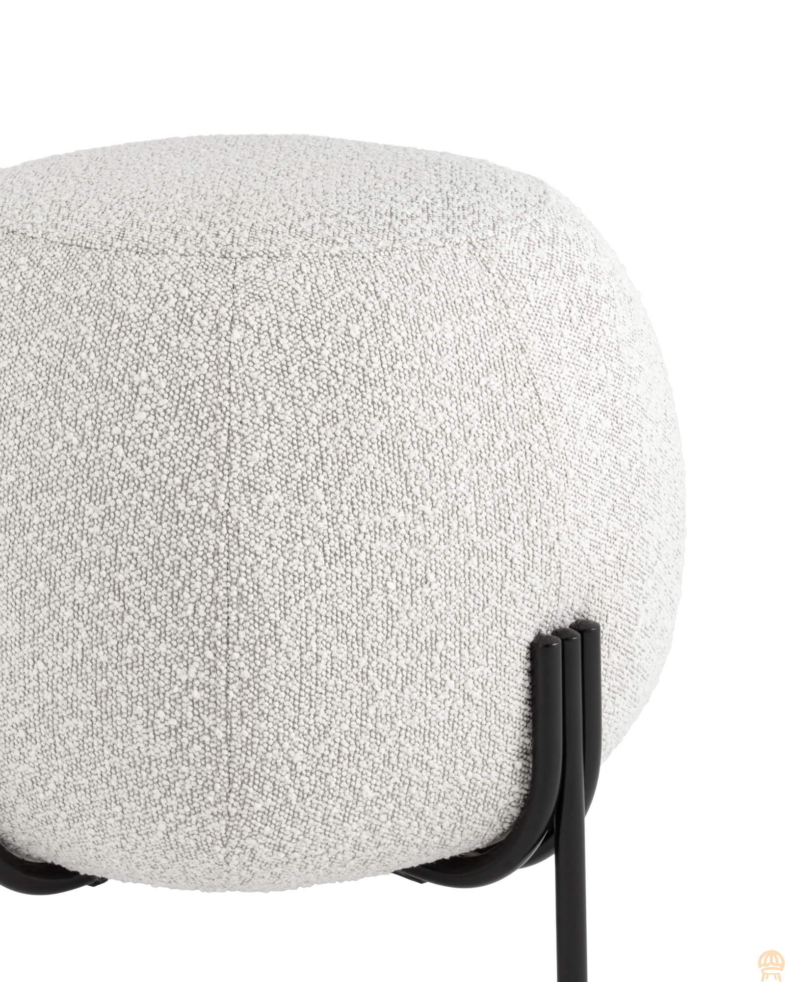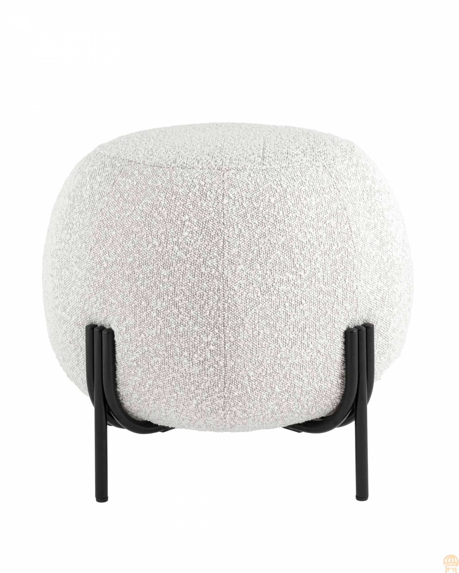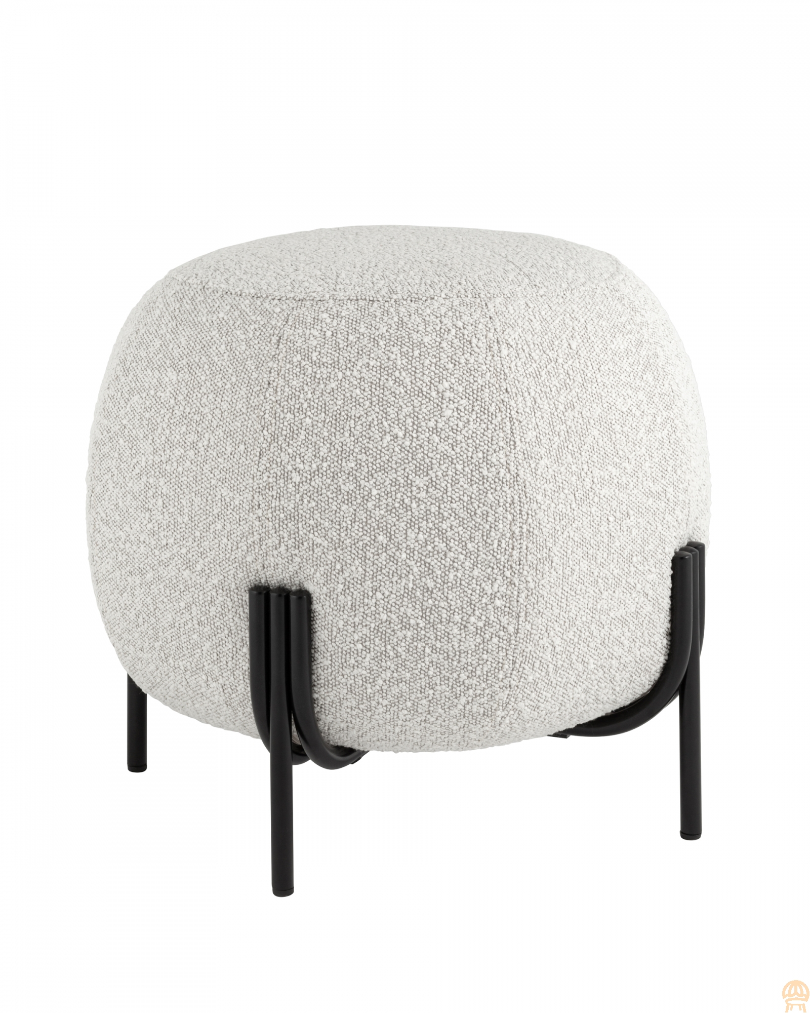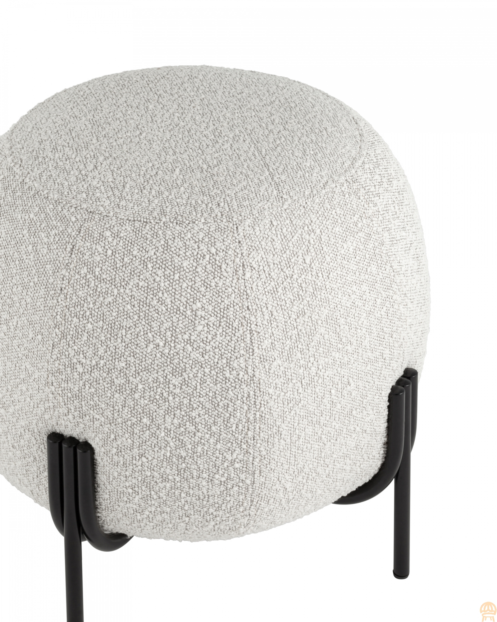 Лаконичный круглый пуф на металлических ножках. Мягкая обивка выполнена из ткани букле, тактильно приятный и долговечный материал. Металлические ножки черного цвета выдерживают нагрузку до 80 кг. Подпятники в основании ножек делают пуф более устойчивым и предотвращают скольжение. Пуфик станет отличным дополнением для спальни, прихожей или зала.