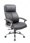 Кресло для руководителя классического дизайна. Выдерживает статическую нагрузку до 200 кг. Обивка выполнена из высококачественного кожзаменителя. Декоративная отделка - хромированный металл. На подлокотниках мягкие накладки из искусственной кожи. Подголовник регулируется по высоте. Регулировка поясничной поддержки.