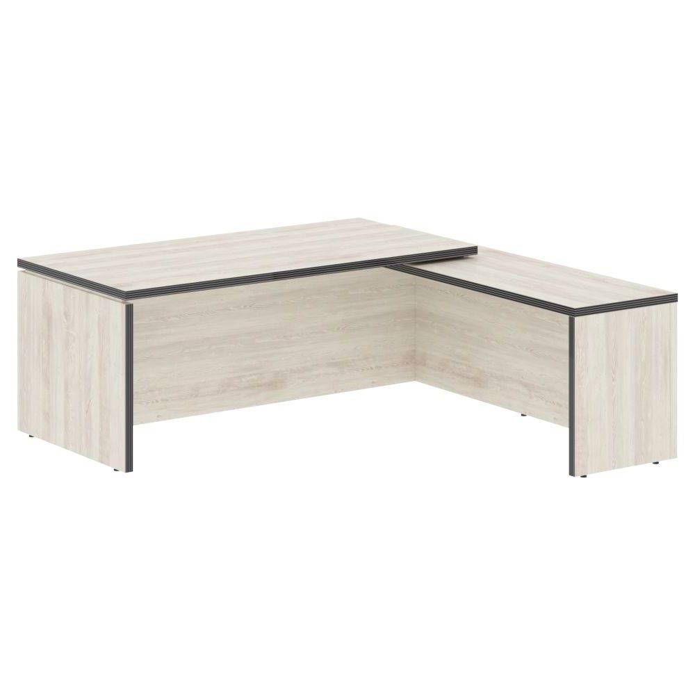 Столешницы и опоры из ЛДСП толщиной 38 мм с глянцевой акриловой кромкой 3D. Стол комплектуется регулируемыми опорами. Фронтальная панель до пола h=640 мм. Расположение приставного стола, левое и правое.