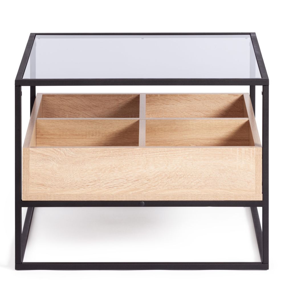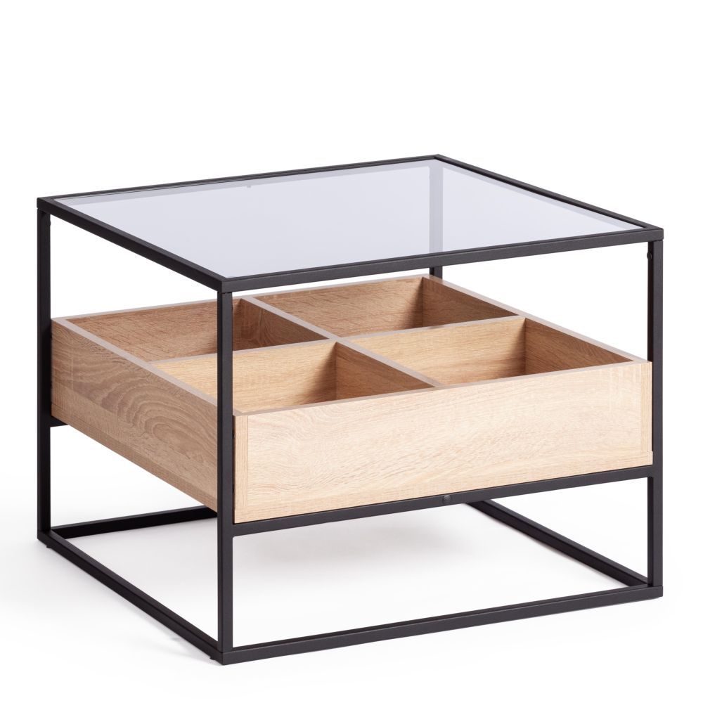 Журнальный стол Tetchair Eclipse ЛДСП 16мм, стекло 4мм, металл 15x15мм, 606046 см, Сонома/черный