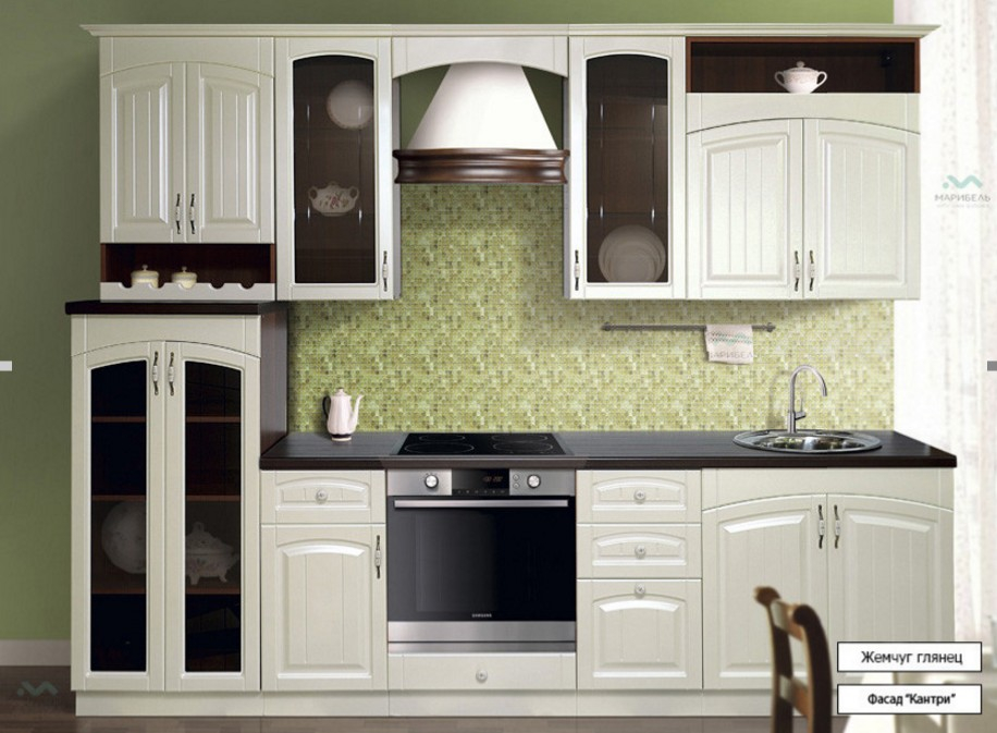 Кухня 2,8 м Марибель Кантри прямая Жемчуг Орех - это качественное изделие производства Марибель, соответствующее современному государственному стандарту.
