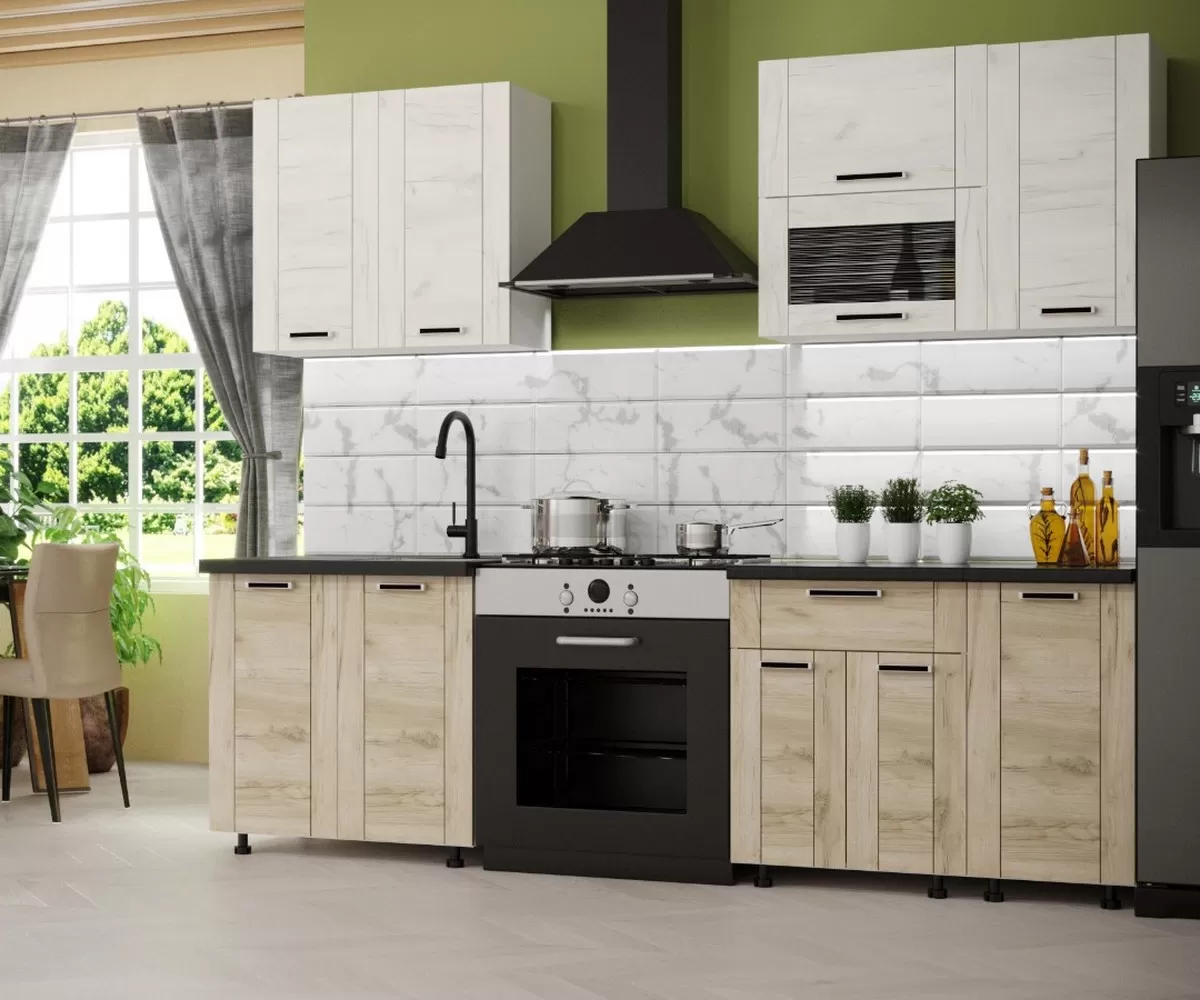 Кухня "Диана 4-У" фасад Лофт 1,8 м МАГ-РИВЕР Белый/Дуб крафт серый/Дуб крафт белый от компании Маг-ривер является продуктом высокого качества, полностью соответствующим современным государственным стандартам.