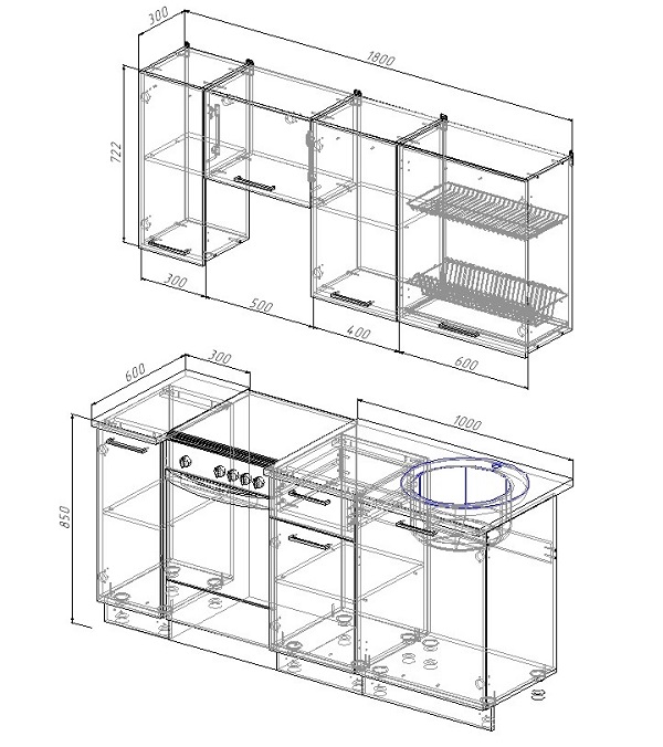 Гарнитур кухонный 1800 Санвут Лада 1800