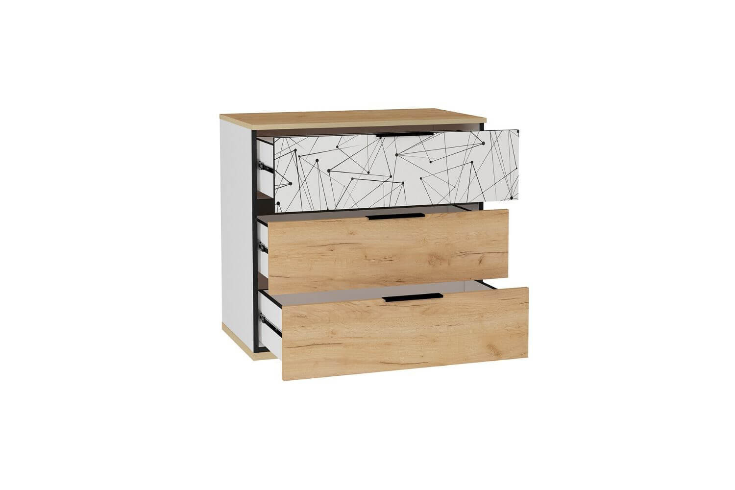 3 ящика на шариковых направляющих неполного выдвижения. Размеры фасадов ящиков - 786х220 мм. Максимальная нагрузка на ящик - 25 кг. Высота указана с учетом опор. Высота опор - 18 мм, высота регулировки - 10 мм. Комод рекомендуется крепить к стене с помощью угловой подвески. Подвеска в комплекте. Крепёж к стене приобретается дополнительно.Условия покупки