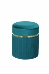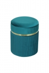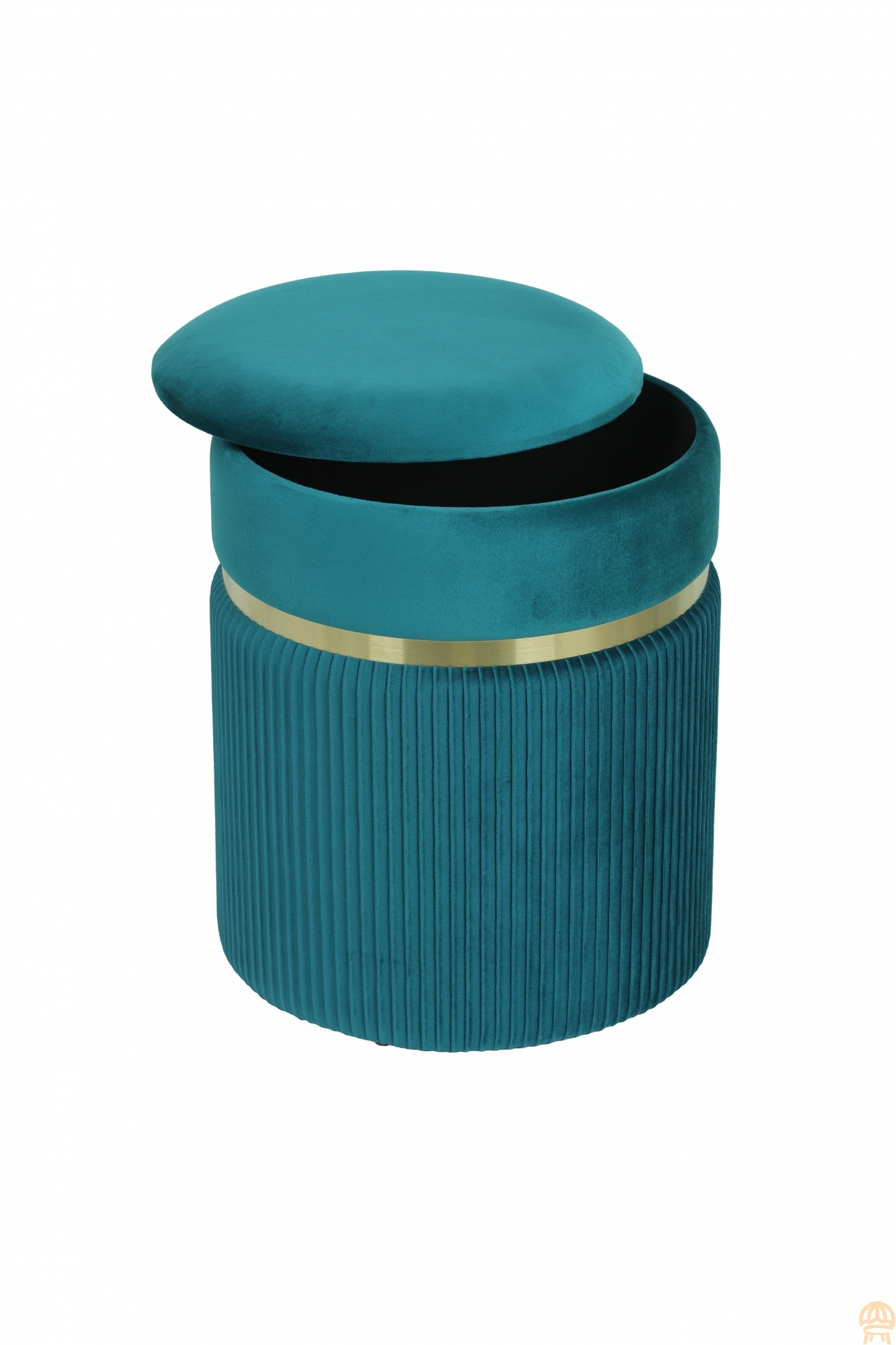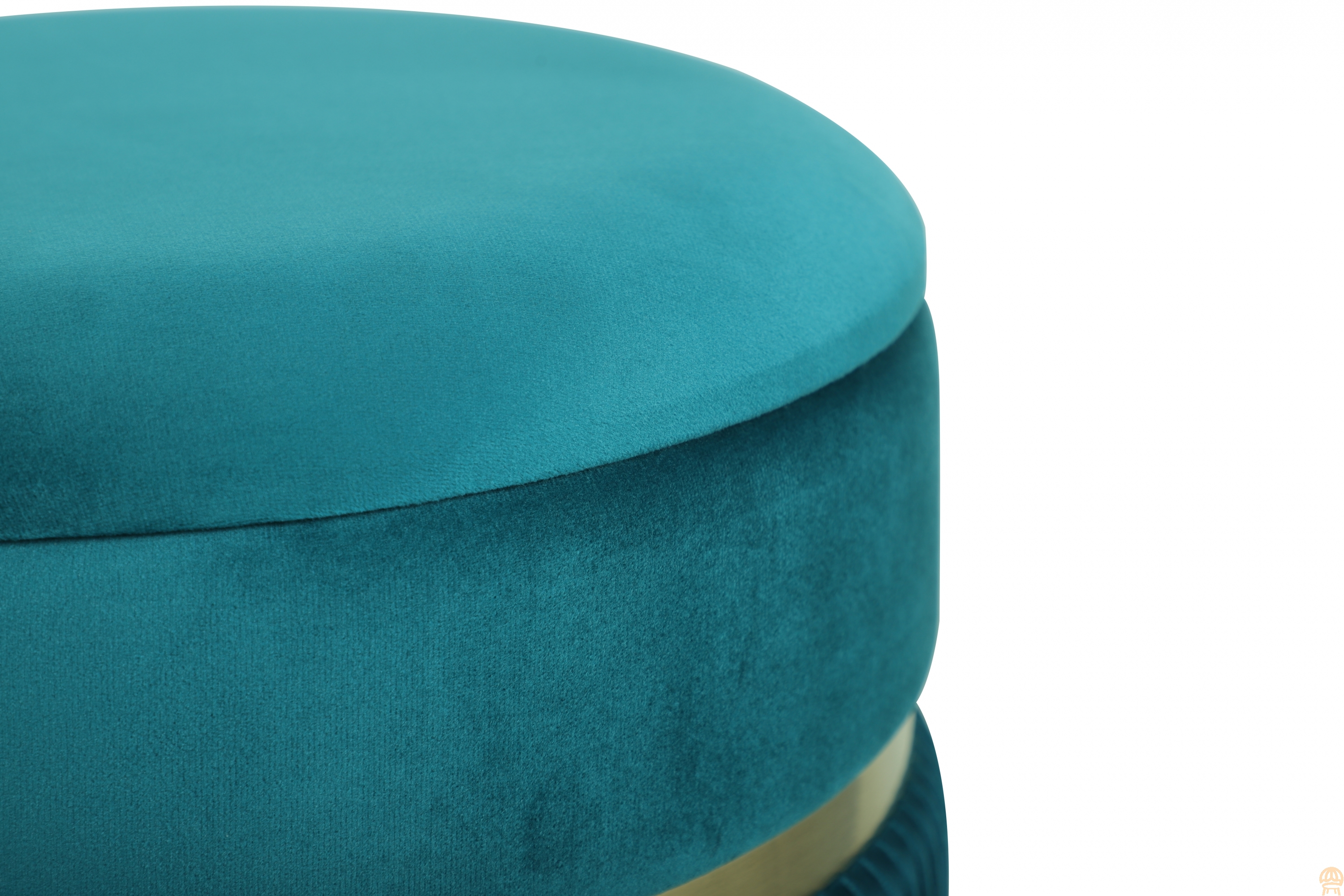 Лаконичная модель пуфа в обивке из мягкого велюра, которая дополнит интерьер вашего дома. Обивка красиво украшена декоративными оборками и металлическим ободком в золотом цвете. Под сиденьем имеется ящик для хранения различных мелочей. В основании предусмотрены специальные подпятники, которые делают пуф более устойчивым и предотвращают скольжение. Высота пуфа: 44 см. Диаметр: 36 см.