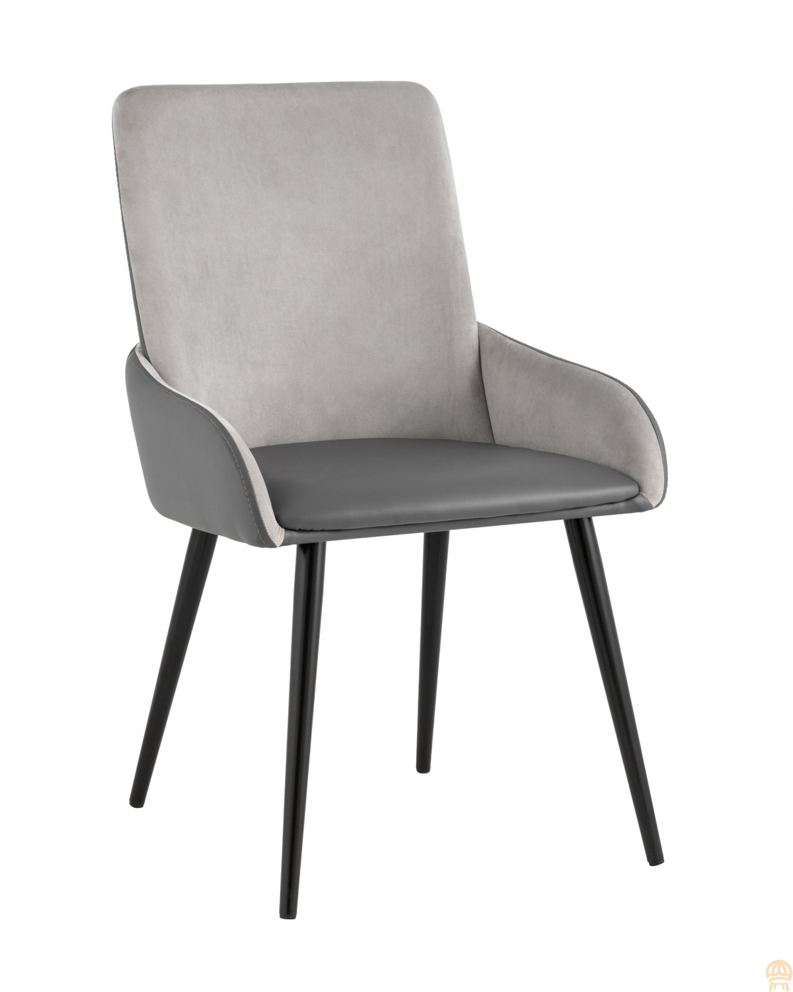 Комбинированная обивка выполнена из мягкого велюра на спинке и прочной экокожи на сиденье. Крепкие металлические ножки, окрашенные порошковой краской в черном цвете, способны выдерживать большие нагрузки. На ножках дополнительно предусмотрены специальные подпятники, которые предотвращают скольжение и повреждение напольного покрытия.