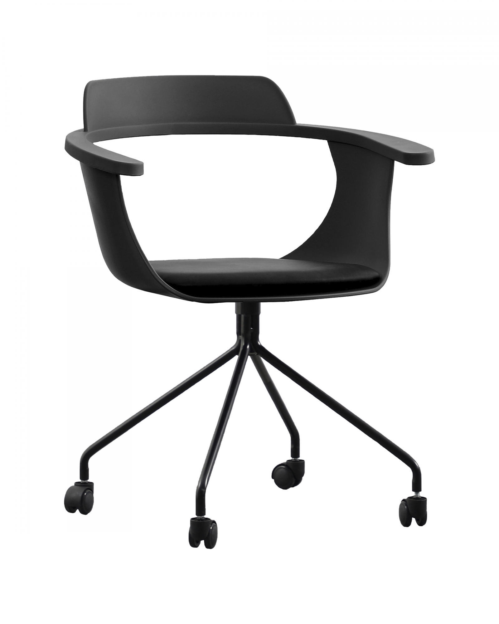 Лаконичное компьютерное кресло Doulton в современном стиле. Эта уникальная модель будет прекрасно смотреться как в высокотехнологичной обстановке хай-тек, так и в помещении, оформленном в скандинавском стиле. Спинка и подлокотники изготовлены из прочного PP-пластика, подушка на сиденье – из экокожи в черном цвете. Крестовина выполнена из металла, окрашенного порошковой краской в черном оттенке. Кресло оборудовано колесиками для более удобного пользования. Высота сиденья не регулируется. Максимальная нагрузка до 150 кг.