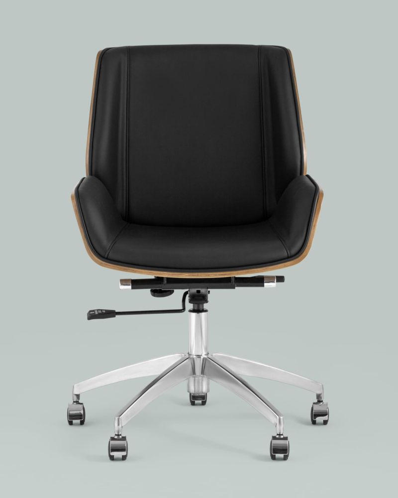 Современное и функциональное офисное кресло. Дизайнерская форма добавит помещению уюта и стиля, а вставки, декорированные под натуральное дерево, выглядят очень изысканно. Обивка выполнена из качественной экокожи. Комфорта добавляют удобные подлокотники, а благодаря механизму регулировки высоты и качания можно выбрать удобное положение. Удобная спинка оказывает качественную поддержку и позволяет провести в кресле долгое время без усталости. Каркас изготовлен из металла и позволяет выдержать нагрузку до 150 кг.