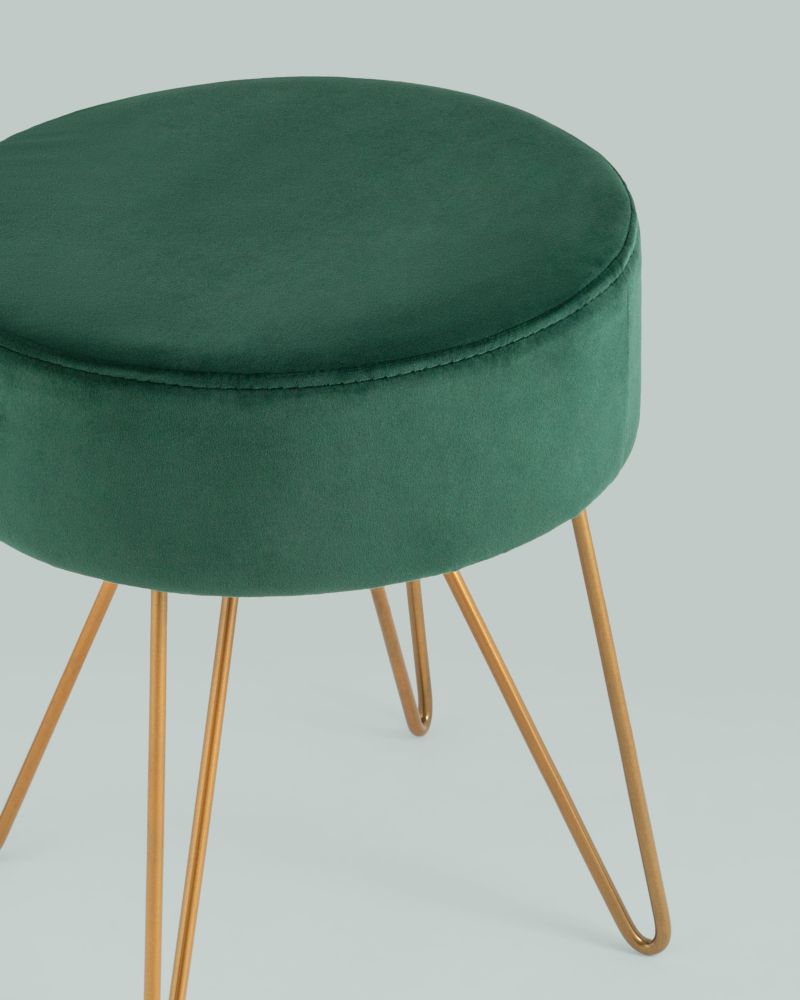 Компактный мягкий пуф на металлических ножках. Мягкая обивка выполнена из износостойкого велюра, тактильно приятный и долговечный материал. Изогнутые металлические ножки высотой 27 см дополняют дизайн и придают пуфику изящный вид. Подпятники в основании ножек делают пуф более устойчивым и предотвращают скольжение.