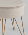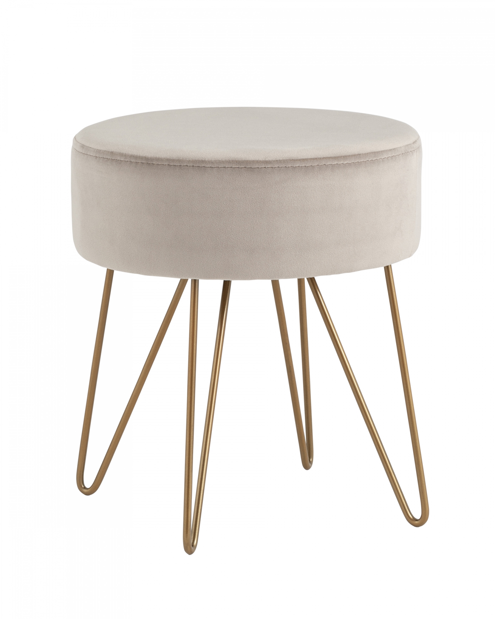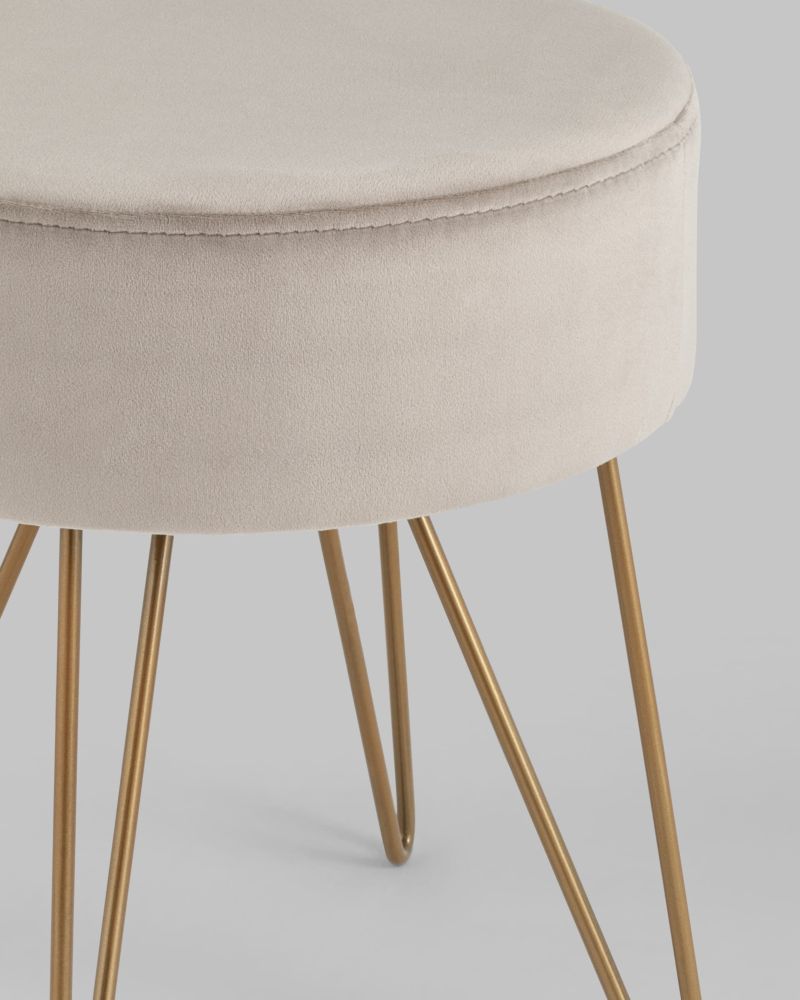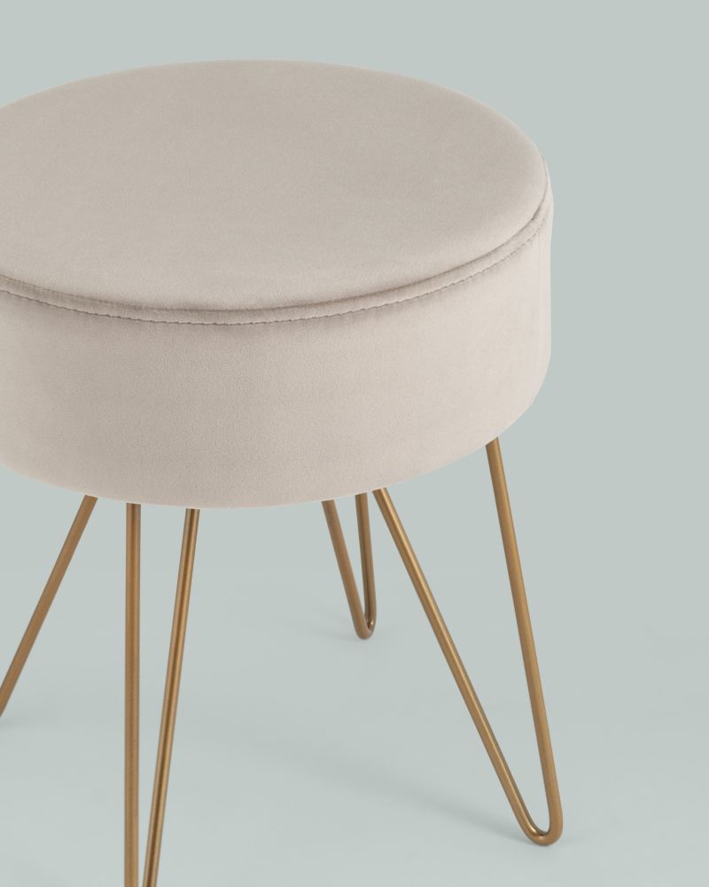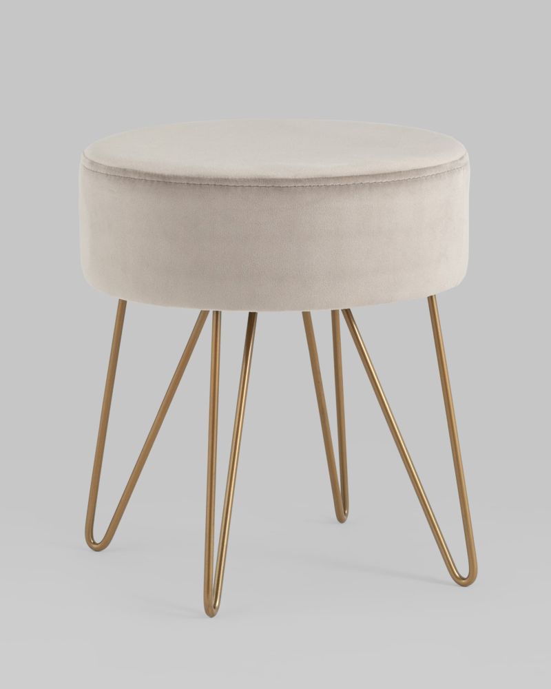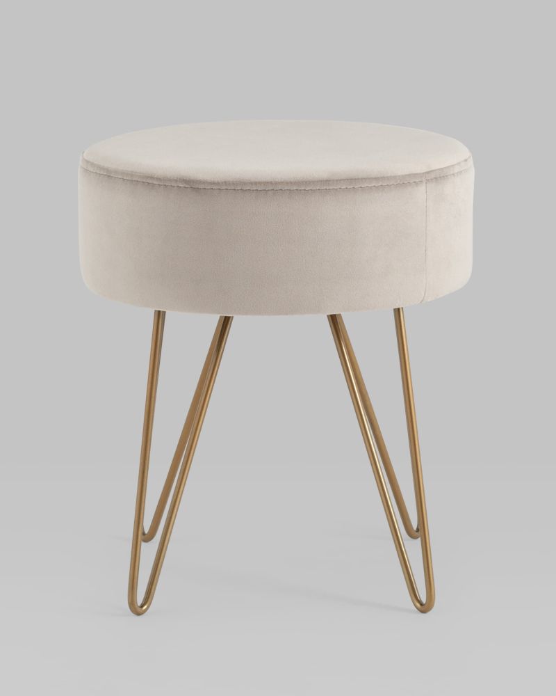 Компактный мягкий пуф на металлических ножках. Мягкая обивка выполнена из износостойкого велюра, тактильно приятный и долговечный материал. Изогнутые металлические ножки высотой 27 см дополняют дизайн и придают пуфику изящный вид. Подпятники в основании ножек делают пуф более устойчивым и предотвращают скольжение.
