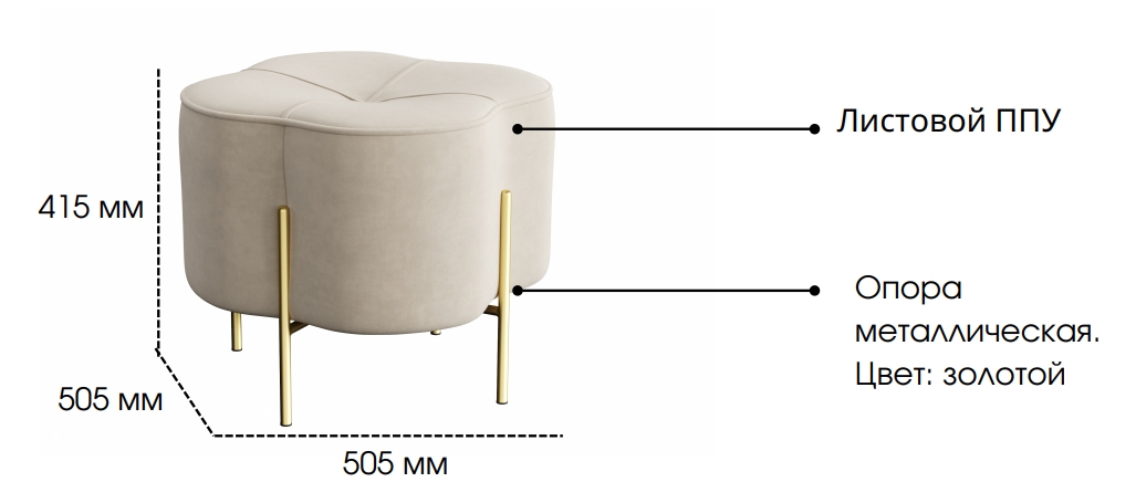 - Ножки: рама для пуфа металлическая. Цвет - золотой.
