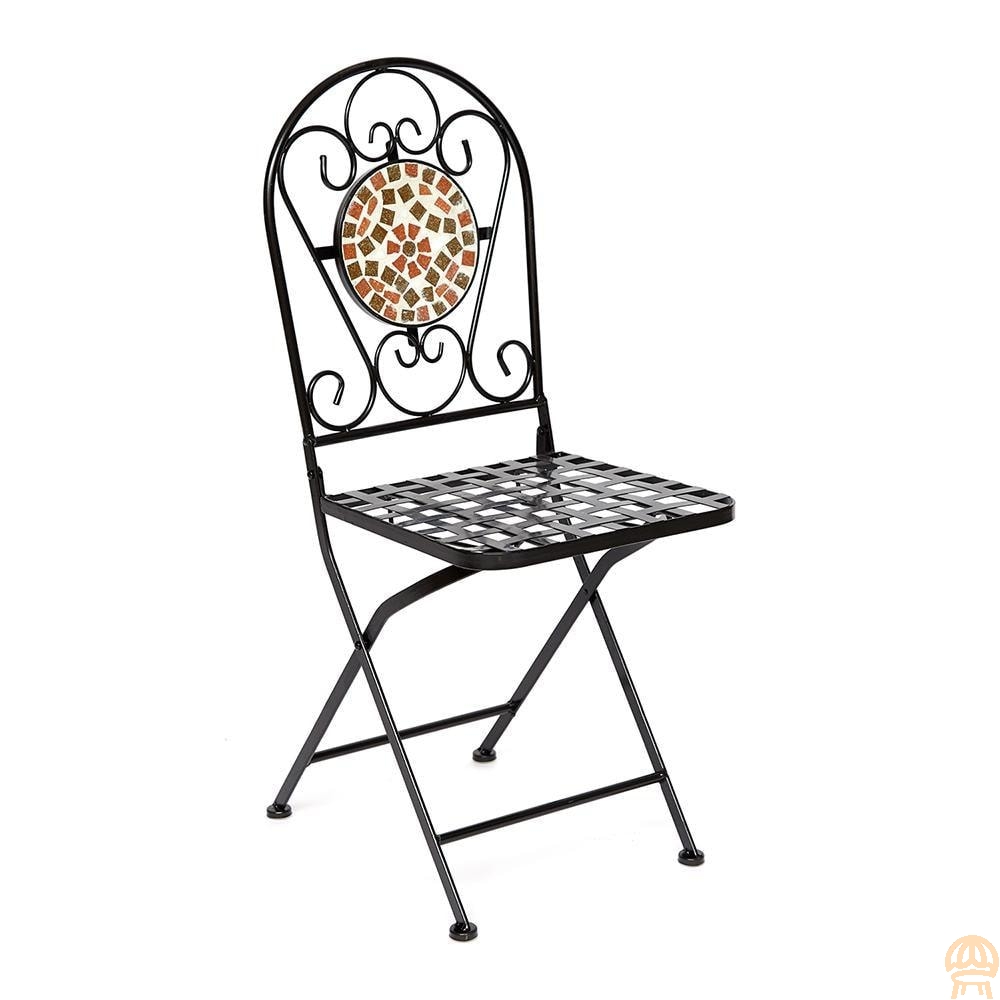 Изящная форма и изысканный дизайн компактного складного стула Secret De Maison VICENZA из коллекции BEAUJOLAIS не только выгодно выделяют его в интерьере, но и помогут создать гармоничное пространство на загородной веранде, городском балконе или приусадебном участке. Спинка, украшенная оригинальным винтажным орнаментом из мозаики и коваными узорами ручной работы, прочный каркас, изготовленный из стального сплава с напылением краски, выглядят дорого, элегантно, добавят ноты изысканности и индивидуальности в ваш интерьер. Стул легко складывается и раскладывается, не занимает много места при хранении. Модель практична, надежна, способна выдерживать большие нагрузки, устойчива к воздействию влаги, температурным перепадам и проста в уходе. Стул VICENZA прекрасно сочетается со столом Secret de Maison ROMEO и с мебелью из коллекции BEAUJOLAIS, поставляется в собранном виде. Для вашего удобства на сиденье можно дополнительно приобрести декоративную подушку из нашей коллекции текстиля. Страна-производитель: КИТАЙ