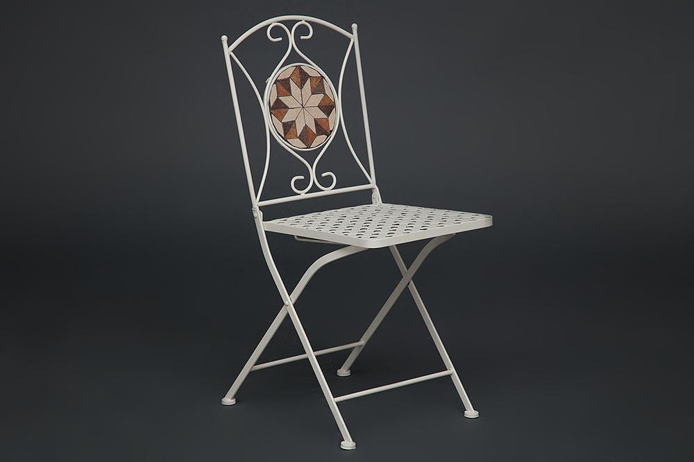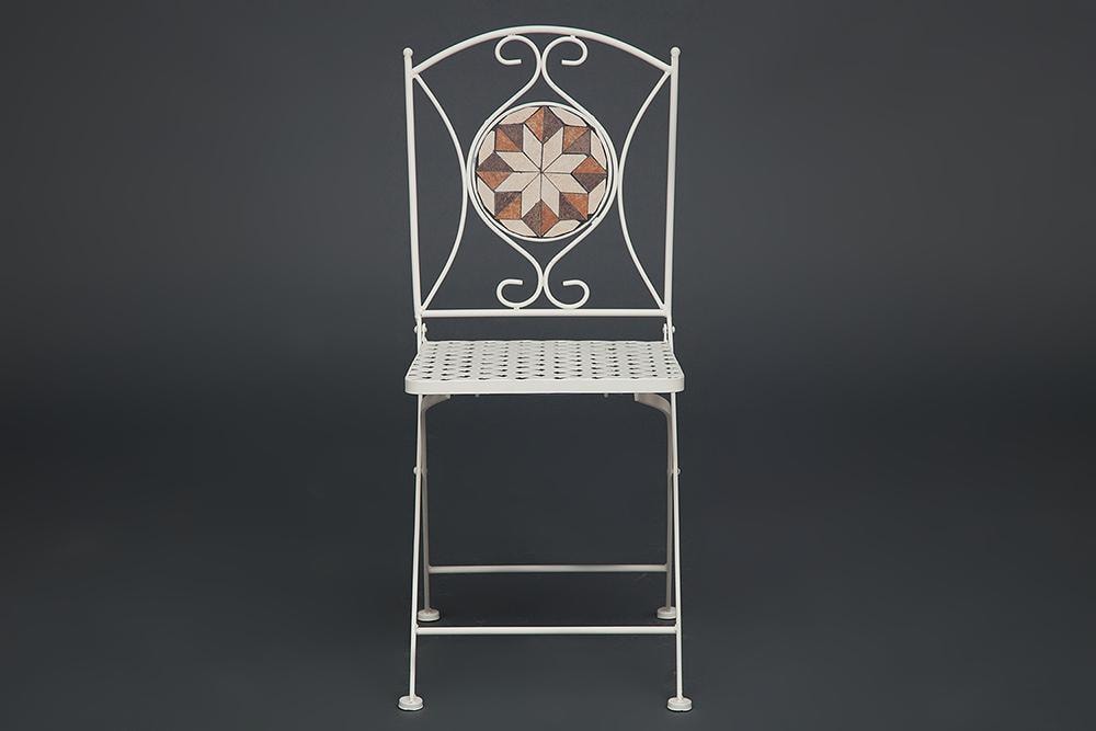 Изящная форма и изысканный дизайн компактного складного стула Secret De Maison Julia из коллекции CHARMANTE не только выгодно выделяют его в интерьере, но и помогут создать гармоничное пространство на загородной веранде, городском балконе или приусадебном участке. Спинка, украшенная оригинальным винтажным орнаментом, имитирующим метлахскую плитку, и прочный каркас, изготовленный из высококачественного стального сплава и покрытый порошковым напылением, выглядят дорого, элегантно, добавят ноты изысканности и индивидуальности в ваш дизайн. Стул легко складывается и раскладывается, не занимает много места при хранении. Модель практична, надежна, способна выдерживать большие нагрузки, устойчива к воздействию влаги, температурным перепадам и проста в уходе. Прекрасно сочетается с мебелью из коллекции CHARMANTE, поставляется в собранном виде. Для вашего удобства на стул можно дополнительно приобрести декоративную подушку из наших коллекций. Страна-производитель: КИТАЙ