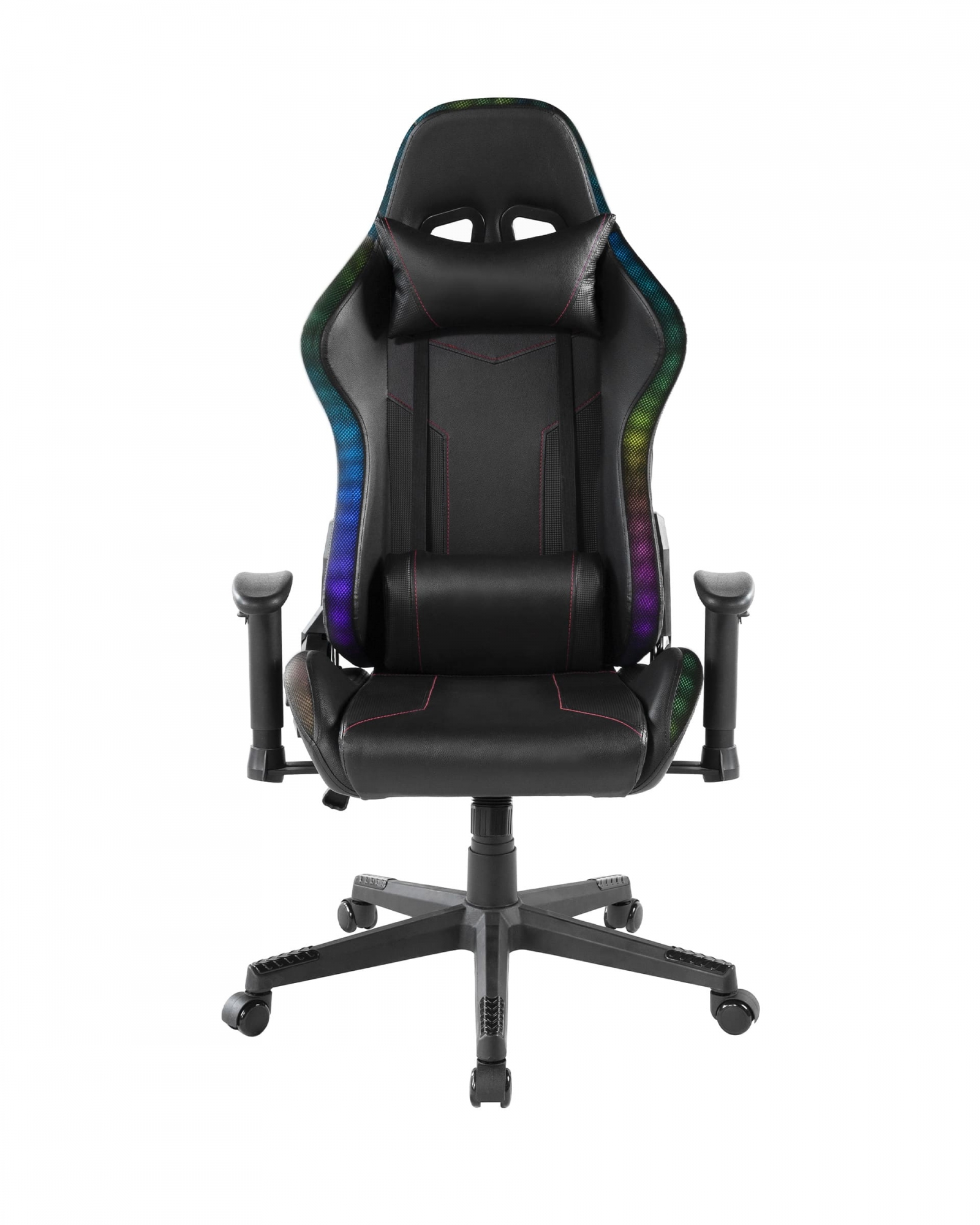 Игровое компьютерное кресло с подсветкой и продуманной эргономикой, которое позволяет с комфортом проводить долгое время за компьютером. Модель имеет все необходимые параметры, чтобы работать и играть за компьютером без усталости. Обивка выполнена из ПВХ - прочный, но при этом эластичный материал, который обладает повышенной плотностью и термостойкостью, за ним легко ухаживать. Такая обивка позволяет максимально продлить срок службы изделия. Кресло оборудовано RGB подсветкой, работу которой можно настроить от внешнего аккумулятора или через адаптер от сети. Управление подсветкой доступно с помощью пульта ДУ. Благодаря множеству режимов и цветов подсветку можно настроить под любое настроение Механизм качания "бабочка" с системой регулировки по высоте газ лифт III класса и регулируемые 2D подлокотники позволяют точечно настроить кресло под свои особенности и предпочтения. Кресло укомплектовано ортопедическими подушками для поддержки шеи и пояса, каждая из которых может быть настроена так, как вам захочется. Механизм регулировки угла наклона спинки от 90 до 150 градусов с фиксацией в четырех положениях и глубокая посадка сиденья позволяют максимально комфортно расположиться в кресле.Мягкие PU-подлокотники добавляют еще больше уюта. Колесики из полиуретана бесшумно передвигаются и не повреждают напольное покрытие.