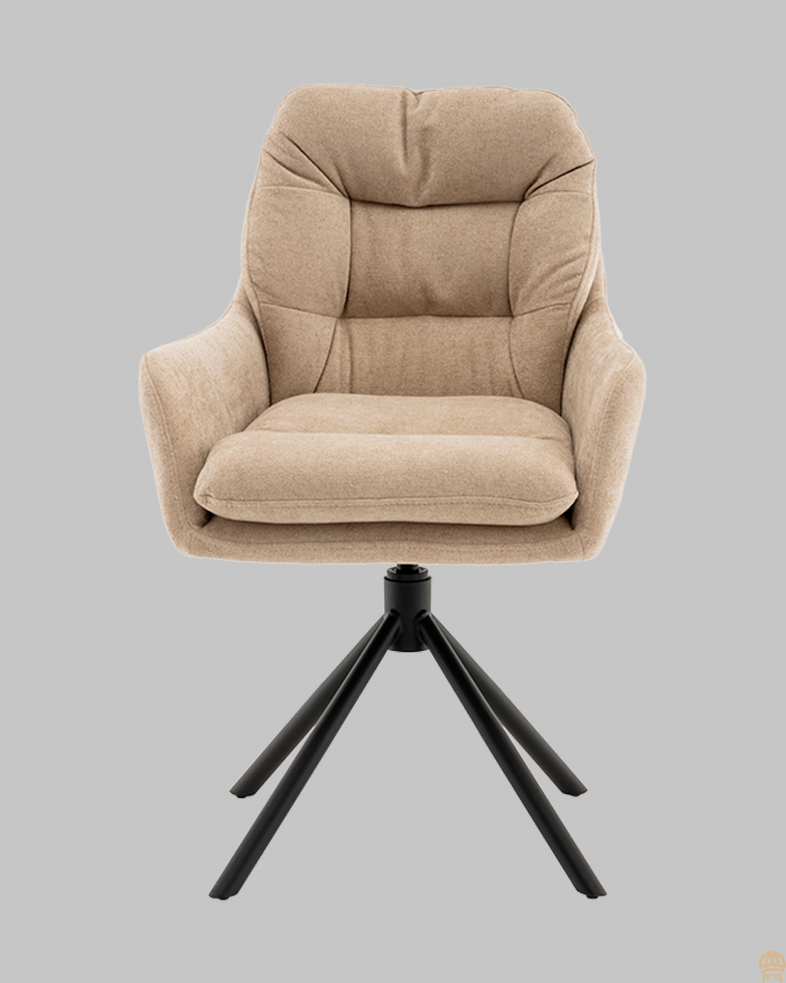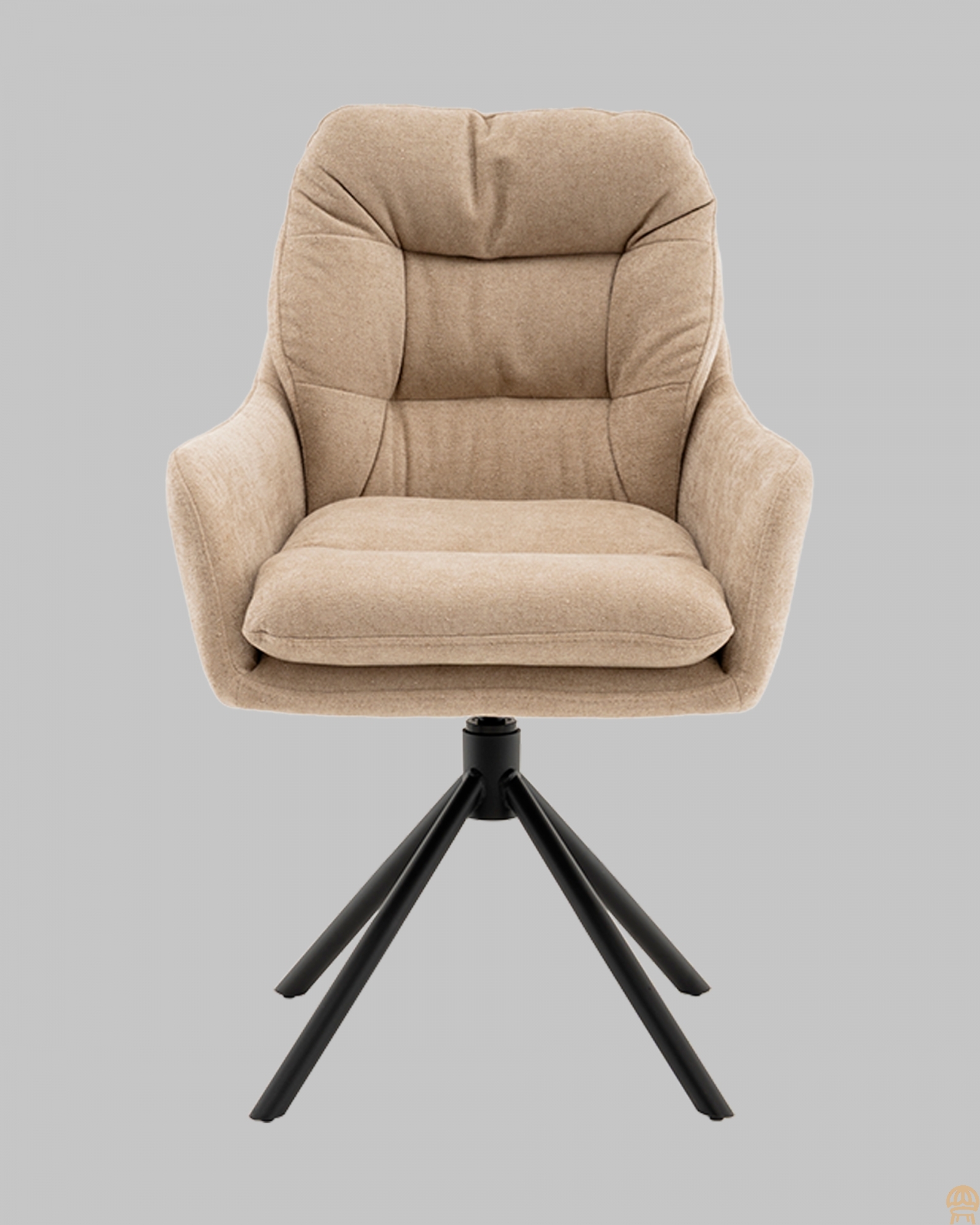 Современный комфорт с мягким характером СтулРальфиосочетает уютный дизайн и функциональные решения для ежедневного комфорта. Обивка из приятного на ощупь букле в бежевом оттенке добавляет интерьеру тепло и текстурный акцент, а объёмная простёжка на спинке и сиденье придаёт модели расслабленный, домашний вид. Удобство и функциональность в деталяхВысокая спинка с анатомическим изгибом и мягкие подлокотники обеспечивают комфортную поддержку во время отдыха или работы. Встроенный поворотный механизм с функцией возврата позволяет вращаться на 360 и автоматически возвращает сиденье в исходное положение, повышая удобство при общении и сохраняя аккуратный вид. Прочная металлическая база с четырьмя ногами гарантирует устойчивость и выдерживает нагрузку до 100 кг. Идеальное решение для интерьераСтулРальфиостанет стильным и функциональным элементом гостиной, кабинета или кухни. Универсальный цвет и современный силуэт позволяют легко вписать его в интерьеры в стиле модерн, сканди или минимализм, делая пространство уютным и удобным для жизни.Условия покупки