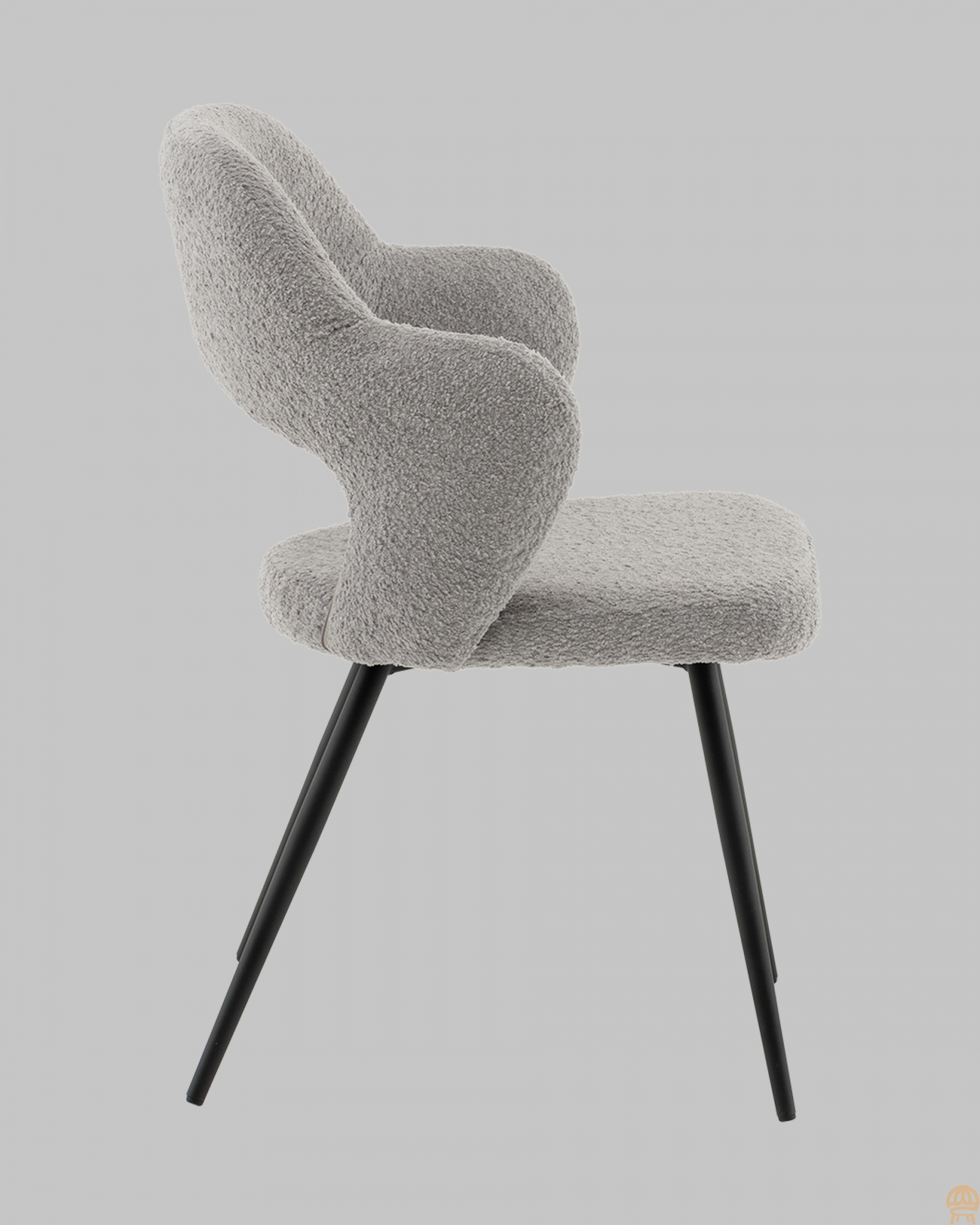 Элегантный силуэт и уютный дизайн Стул для кухниРоккиана это сочетание изысканных линий и домашнего тепла. Обивка из светло-серого букле придаёт модели мягкий, тактильный характер и визуальный уют. Эргономичная спинка с изящным вырезом и плавно изогнутые подлокотники подчёркивают современный стиль и делают силуэт лёгким и воздушным. Комфорт и надёжность для каждого дняШирокое сиденье и поддерживающая спинка обеспечивают удобную посадку, позволяя комфортно проводить время за столом или в беседе. Прочные металлические ножки гарантируют устойчивость и выдерживают нагрузку до 120 кг, сохраняя лёгкость конструкции и элегантный внешний вид. Универсальный выбор для интерьераСтул обеденныйРоккианаорганично впишется в современные интерьеры от минимализма до сканди и модерна. Нейтральный молочный оттенок легко сочетается с любыми цветами и материалами, а лаконичный дизайн делает его стильным и функциональным элементом вашего дома или кафе.Условия покупки
