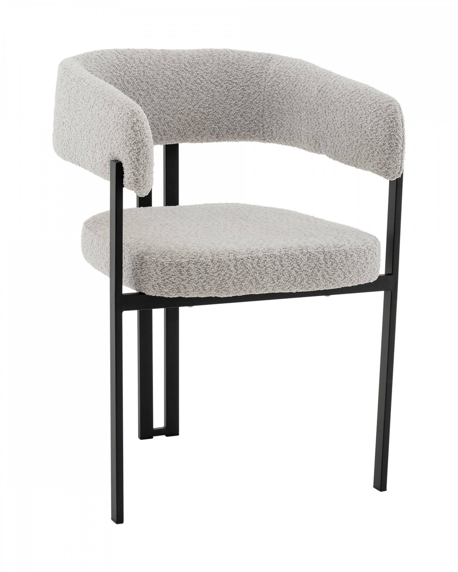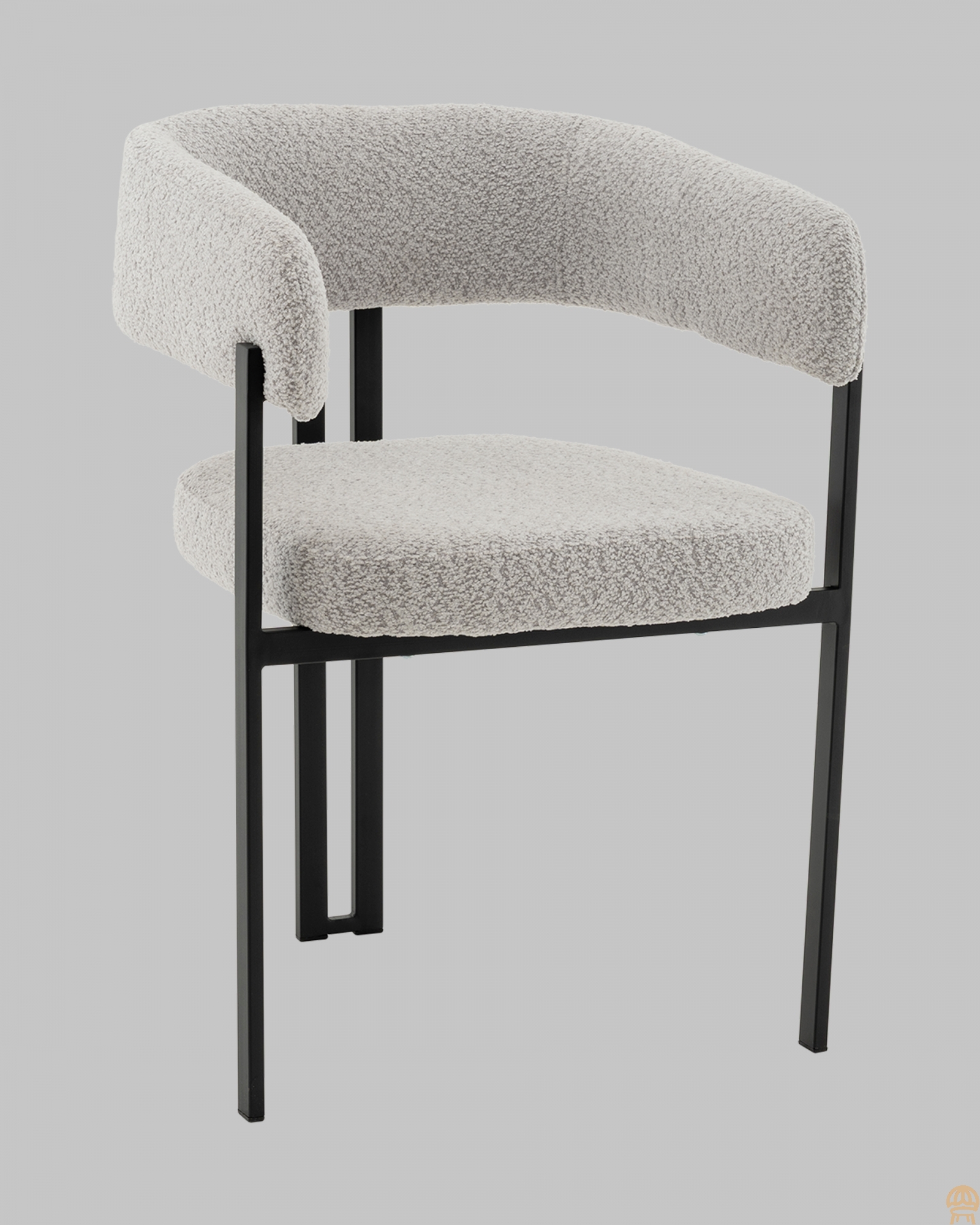 Современный уют в лаконичном исполнении Стул для кухниСеренидат сочетает строгие линии и мягкий комфорт. Обивка из светло-серого букле придаёт изделию тактильную теплоту и современный облик, делая его стильным акцентом в интерьере. Чёрный металлический каркас подчёркивает геометрию силуэта и добавляет выразительности, создавая гармоничный контраст. Продуманный комфорт для ежедневного использованияШирокое сиденье и плавно изогнутая спинка с подлокотниками обеспечивают удобную посадку и поддержку для спины и рук. Прочная металлическая конструкция выдерживает нагрузку до 120 кг, гарантируя надёжность даже при интенсивной эксплуатации дома, в офисе или кафе. Универсальное решение для интерьераБлагодаря сдержанной цветовой гамме и минималистичному дизайнуобеденный стул Серенидатлегко впишется в современный, скандинавский или лофт-интерьер. Он станет не только удобным местом для отдыха, но и стильной деталью, подчеркивающей вкус и характер вашего пространства.Условия покупки